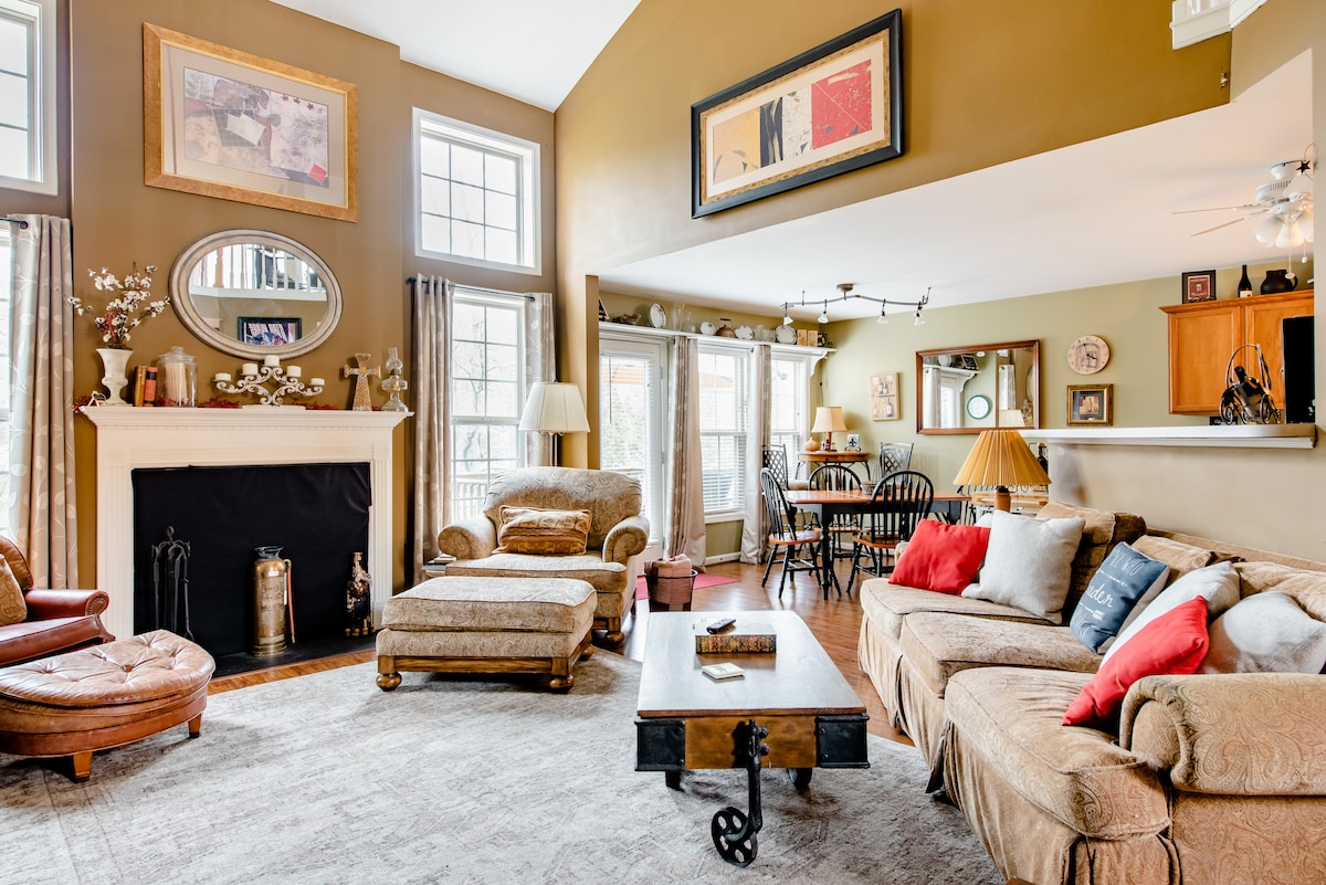 • Maluwang na tuluyan na may 5 kuwarto at 5 banyo—mainam para sa mga grupo • Unang palapag: kuwartong may king‑size na higaan + full bathroom sa pasilyo • Ika-2 palapag: dalawang king en-suite + queen na may banyo sa pasilyo • Walkout basement: dalawang king bed na may mga privacy curtain, full bath + sala • Hot tub • Mabilis na Wi-Fi • Madaling pagparada sa kalye • Ilang minuto lang sa Expo Center, Churchill Downs, at Downtown • Kailangang magtanong muna ang mga bisita ng Derby, Bourbon & Beyond, at Louder Than Life dahil mahigpit ang patakaran sa pagkansela. • Kailangan ng kasunduan sa pagpapatuloy at deposito para sa pinsala