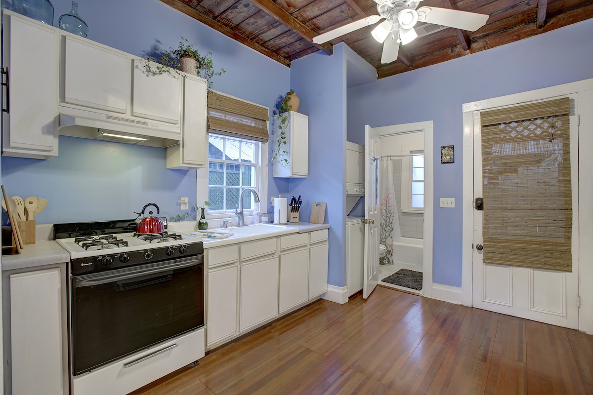 Tangkilikin ang kape sa umaga sa malabay na hardin ng makulay, Creole - style cottage na ito na matatagpuan sa isang malilim na corner lot. Maghanda ng pagkain sa loob ng nakakatuwang modernong paligid ng kusina o maglibot sa mga makukulay na interior hanggang sa makahanap ka ng maaraw na lugar sa couch. Kung mas gusto mong matulog habang nasa bakasyon, huwag mag - atubiling isara ang lahat ng mga kahoy na shutter upang bumuo ng isang komportable at madilim na cocoon sa silid - tulugan at magpanggap tulad ng natitirang bahagi ng mundo ay tumigil habang ikaw ay namamahinga. Kapag handa ka nang lumabas at mag - isip, makipagsapalaran sa labas para tuklasin ang natatanging arkitektura ng Bywater at bisitahin ang mga lokal na dive at hangout! Ang guest house na ito ay isang creole - style cottage na katabi ng tradisyonal na shotgun (inookupahan ng host) sa isang malilim na corner lot sa Bywater Historic District. Orihinal na itinayo noong 1800s, na inayos noong 2007, at ganap na na - refresh noong 2017, masisiyahan ang mga bisita sa ganap at pribadong access sa 600+ square foot na ito, 1 silid - tulugan, 1 bath cottage na may kusinang kumpleto sa kagamitan. May queen bed sa kuwarto kasama ang West Elm modular couch sa sala na komportableng natutulog sa isang may sapat na gulang. May mga dagdag na linen at unan. Flat - screen TV na may DirecTV at DVD player. Washer/dryer sa unit na may mga kagamitan. Bagong lalagyan ng suha at satsuma juice mula sa mga puno sa looban, kapag nasa panahon (Oktubre - Pebrero)! Maaaring maramdaman ng mga bisita na malugod na umupo sa looban, na may pribadong patyo sa labas lang ng pinto ng sala. Nakatira kami on - site, at ang pinto ng aming tuluyan ay nasa tapat lang ng patyo mula sa sala o sa deck sa tabi ng pintuan ng iyong pasukan. Kung may kailangan ka, masaya kaming nasa serbisyo mo. Kung hindi, iiwanan ka namin sa tahimik na kasiyahan ng tuluyan at para ma - enjoy ang iyong mga biyahe. Matatagpuan ang guest house sa Bywater Historic District, isang kapitbahayan ng Creole na kadalasang kilala sa matingkad na kulay na arkitektura at malikhaing miyembro ng komunidad. Ipinagmamalaki ng kapitbahayan ang madaling access sa kainan at libangan, at malapit ang ilang hotspot, kabilang ang isa sa mga pinakamahusay na brunch ng lungsod, at wine bar na may live courtyard jazz nang maraming beses sa isang araw! Dalawang bloke ang layo ng Crescent Park trail sa kahabaan ng ilog at magandang gateway ito papunta sa French Quarter. Ang Crescent Park trail sa kahabaan ng Mississippi Riverfront ay dalawang bloke mula sa bahay at nag - aalok ng madaling bike/pedestrian/wheelchair access sa French Market (tungkol sa 1.5 milya) kasama ang natitirang bahagi ng French Quarter sa kabila (Jackson Square ay tungkol sa 2 milya mula sa bahay). Maraming ruta ng bus ang nasa loob ng 2 -4 na bloke ng bahay, kabilang ang Bus Route 5 dalawang bloke ang layo na magdadala sa iyo sa Quarter. Humigit - kumulang 1.6 milya ang layo ng Rampart - St. Claude Streetcar Route sa intersection ng St. Claude at Elysian Fields. Maraming mga lokal na negosyo ang nag - aalok ng mga scooter at bike rental sa loob ng ilang milya ng bahay, at isang bike share station (Blue Bikes NOLA) ay matatagpuan sa paligid ng sulok. Uber/Lyft/rideshares ay madaling magagamit, karaniwang sa 5 minuto o mas mababa sa karamihan ng mga oras ng araw, at gastos sa paligid ng $ 7 -$ 12 sa French Quarter/CBD (o Central Business District tulad ng namin sa New Orleans tumawag sa aming downtown), depende sa trapiko, oras ng araw, eksaktong dropoff lokasyon, atbp. Kung nagmamaneho ka ng sarili mong sasakyan, tutulungan ka ng mga app tulad ng "Spothero" na mahanap at maihahambing ang mga opsyon para sa mga pribado o may bayad na paradahan at lugar sa iyong destinasyon. Karaniwang medyo madaling mahanap ang paradahan sa kalye at walang kinakailangang permit/walang kinakailangang paghihigpit sa oras. Nasa kabilang kalye ang J&J 's Sports Bar. Bagama 't maaari itong maging mahusay para sa panonood ng isang laro na malapit o para sa isang takip sa gabi bago mo pindutin ang sako, depende sa araw, maaari rin itong lumikha ng ingay ng pag - uusap sa mga oras ng pag - uusap. Ang isang puting noise machine ay ibinibigay sa silid - tulugan, sa kaso ng mga sensitibong natutulog. Numero ng Panandaliang Lisensya/Uri/Pag - expire ng Lungsod ng New Orleans: 17STR -16097/Accessory STR/16 Agosto 2018