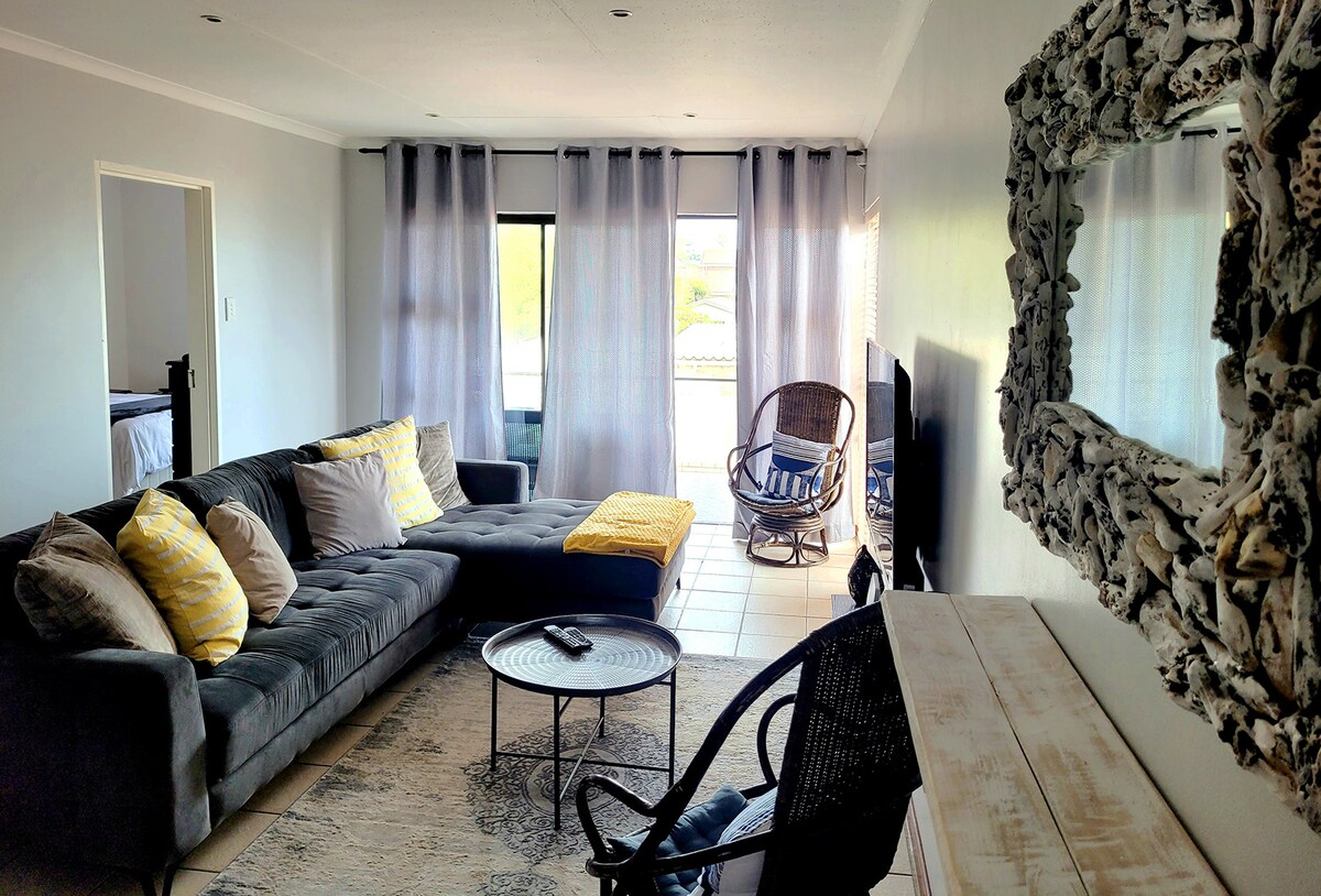 Libreng wi - fi. Power back up at inverter system na may makinis na auto switch sa ibabaw. Gas hob. Maluwag na apartment sa isang ligtas na gusali sa pangunahing beach ng Jeffreys Bay. 3 silid - tulugan, 3 banyo, laki ng sahig 140 m². Mga malalawak na tanawin mula sa lounge, dining room, kusina, at balkonahe. Matatagpuan ang surf spot Kitchen Windows sa harap mismo ng apartment, perpektong lugar para sa mga nagsisimula at bihasang surfer. Pribadong garahe sa basement. Malapit sa mga restawran at bar, pero payapa at tahimik ang apartment.