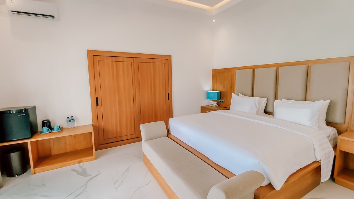 Welcome to Bloom Horizon—an airy upper-floor suite made for deep rest. Step onto your view terrace and watch the ricefields roll toward a long, quiet horizon; on clear evenings you’ll catch the soft line of the Java Sea far beyond. Inside, you’ll find more space than a standard hotel room, a proper kitchen for simple, clean meals, and a king bed with blackout for unbroken sleep. Perfect for couples, creators, and anyone who wants space, cleanliness, and quiet as a daily rhythm.
