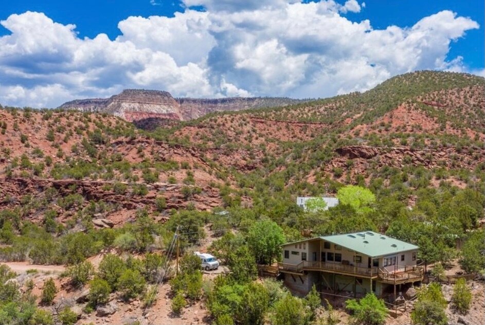 Nestled at the base of a majestic mountain, Casa del Rio offers sweeping views of the mesa and river, with the Jemez River flowing right through the property. Modern amenities meet natural beauty—enjoy sunsets from the deck, s’mores by the riverside firepit, and drift off to the soothing sounds of the water. Just five minutes from hot springs and scenic hikes, and only an hour from Santa Fe or Albuquerque, it’s the perfect place to relax, explore, and make unforgettable memories.
