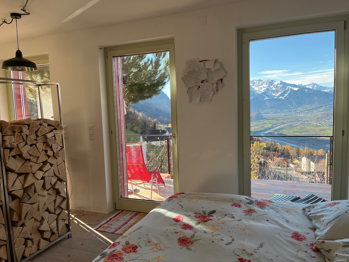 900m asl sa sentro ng Triesenberg, na naka - embed sa pamamagitan ng mga bundok na may tanawin pababa sa Rheinvalley ng Liechtenstein at Switzerland. 1h mula sa Zürich, 12min sa Vaduz o Malbun skiresort, 6min lakad papunta sa busstop/supermarket. Pagha - hike sa harap ng iyong pintuan.