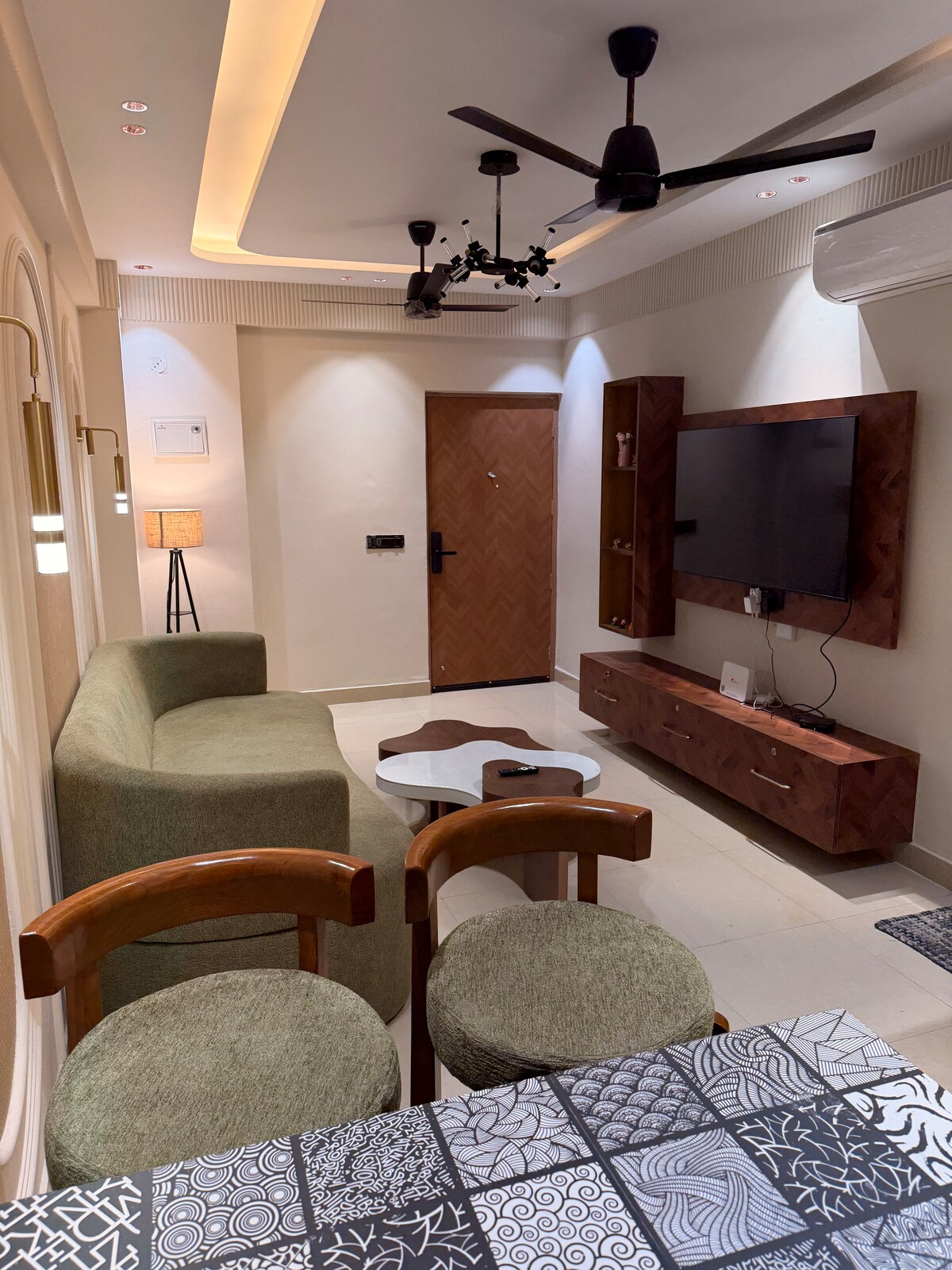 A personal, fully furnished 2 BHK Apartment Space, with modern and luxurious interiors. Perfect for family stays and private parties.