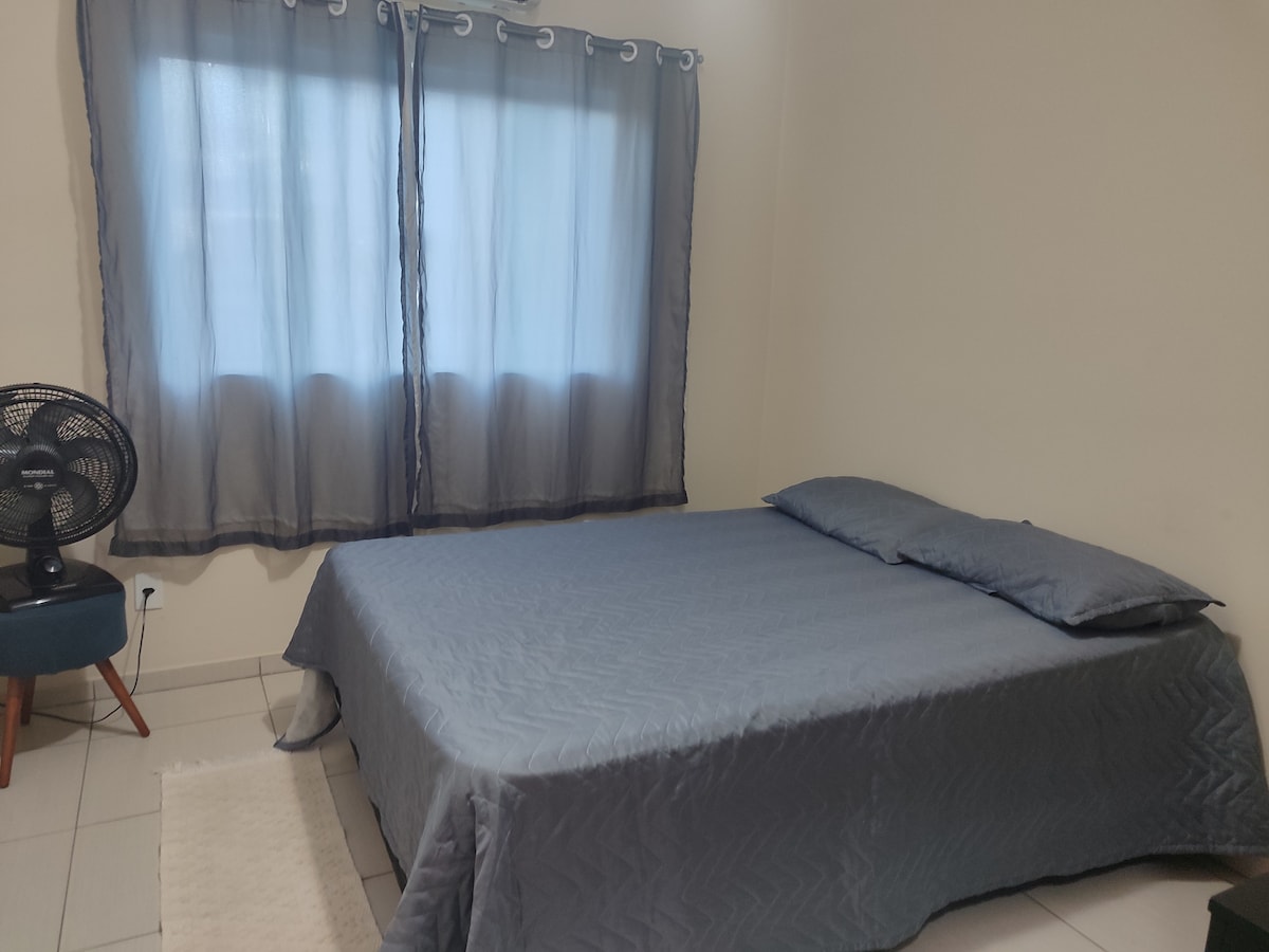 Confortável apartamento ideal para sua estadia! Conta com sala equipada com sofá-cama (que comporta 1 pessoa deitada confortavelmente), ar-condicionado na sala, Possui dois quartos: um com cama de solteiro (ventilador) e outro com cama king e ar-condicionado. Banheiro social funcional, cozinha completa com utensílios, lavanderia com máquina de lavar e área com churrasqueira para momentos especiais. Acomoda com conforto e praticidade.