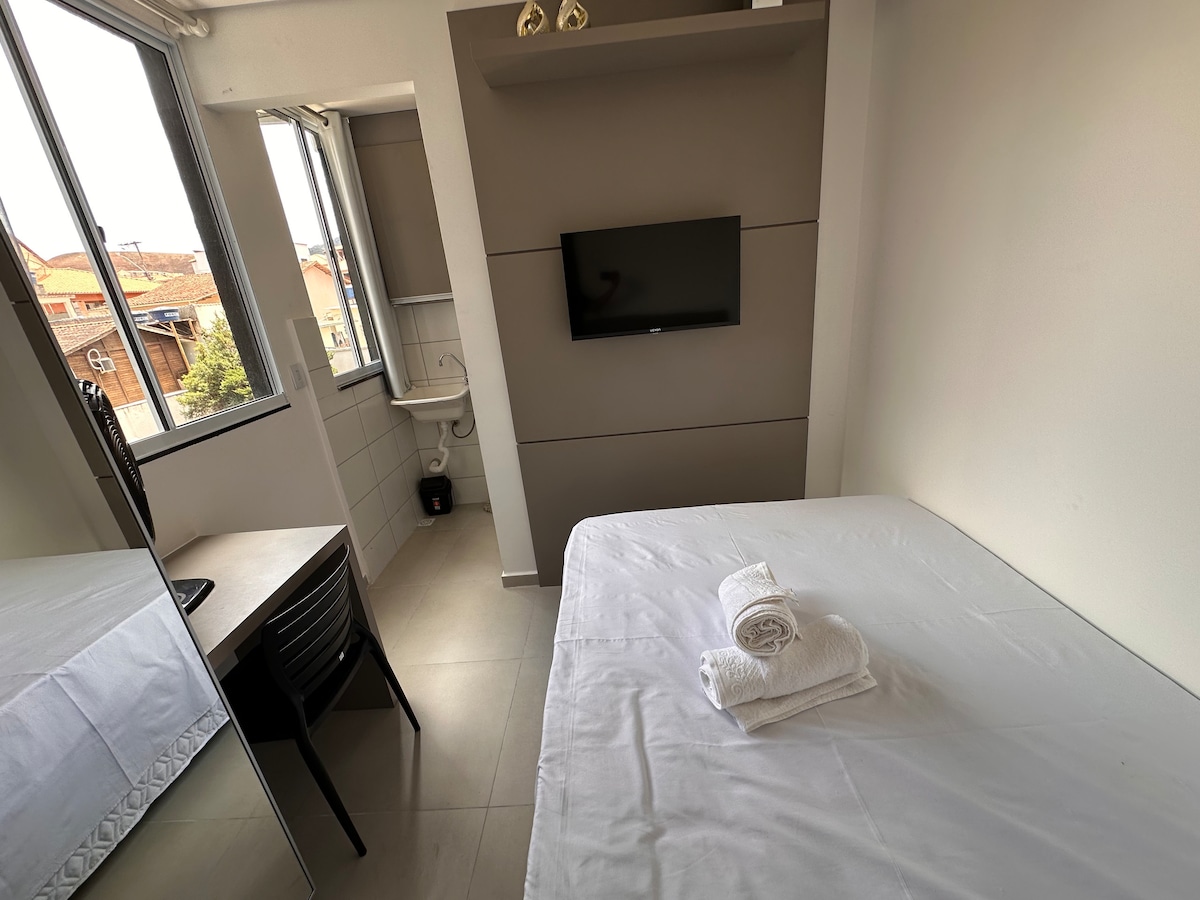komportableng kitnet! Isang malinis, ligtas, organisado at kumpletong lugar para mamalagi nang mahigit sa 1 araw. Sa kapitbahayan ng Cruzeiro Celeste. Ito ay isang supermarket drugstore at 1 minuto mula sa bus stop, malapit sa BR 381. May iisang higaan ang tuluyan, at kapag dumating ang 2 tao, may isa pang kutson. Nilagyan ang kusina ng refrigerator, de - kuryenteng cooktop, kubyertos, pinggan at ilan. mga kaldero at kawali. Mesa na may 2 upuan. May libreng wifi Smart TV na may YouTube frigobar, shower may car seat