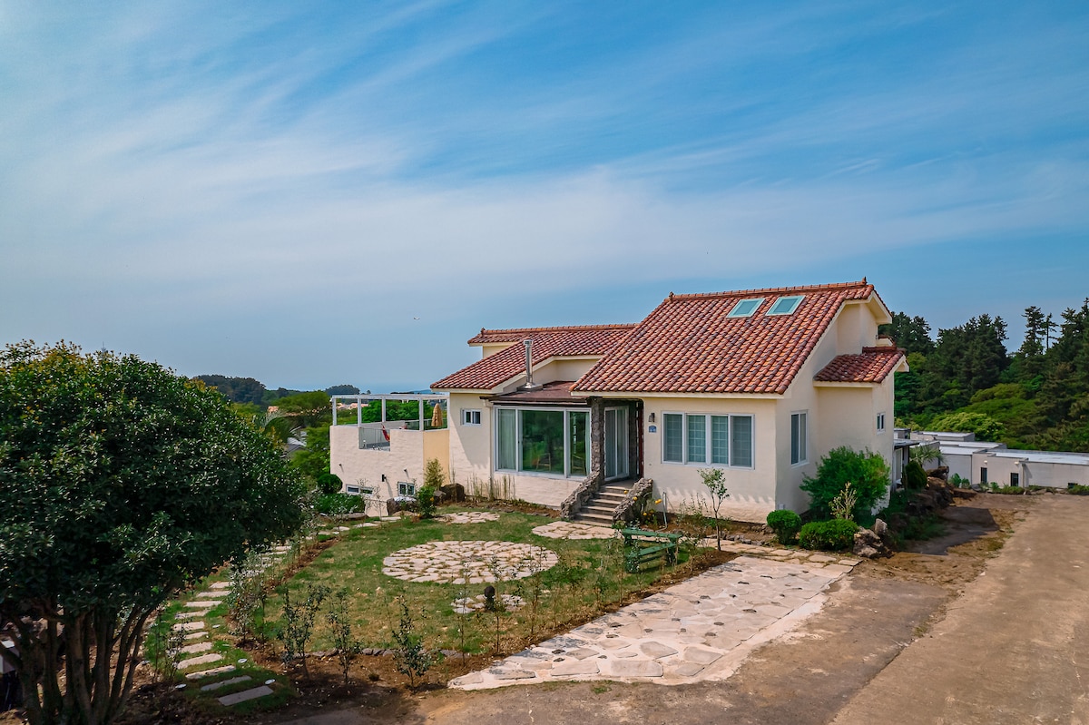 Isa itong dalawang palapag na bahay sa kanayunan na matatagpuan sa Haengwon - ri, isang liblib at tahimik na windmill village. Isa itong mapagmahal na bahay na pinag - aralan ko ang arkitektura para magamit bilang pangalawang bahay, mga piniling materyales, at isa - isang itinayo. Isa itong pribadong bahay sa ika -1 at ika -2 palapag. Ang pinakamasasarap na bedding ng hotel ay nagbibigay - daan sa iyong magrelaks at magpahinga. Toilet 2, sala 2, kusina, labahan.. Puwede kang manatiling komportable tulad ng sarili mong tahanan. Naka - install ang lahat ng aircon sa kuwarto at sala, kaya puwede mo itong gamitin nang walang abala. Kung maglakad ka para sa tungkol sa 10 minuto, maaari mong mahanap ang magandang Woljeong - ri beach na mainit sa mga araw na ito, at ang aming Haengwon - ri ay mayroon ding tahimik at mabuhanging beach (aka Conan Beach) na mabuti para sa shellfish at maglaro sa tubig. Mainam na pumunta sa mga atraksyong panturista ng silangang bahagi ng Jeju. Paliguan ng sanggol, upuan ng sanggol, upuan ng sanggol na kotse Handa na ito:) Mayroon ding mga tubo ng tubig, tolda, at tarps sa tabi ng dagat sa tag - araw. Mula Hulyo hanggang Agosto, bukas ang pool.