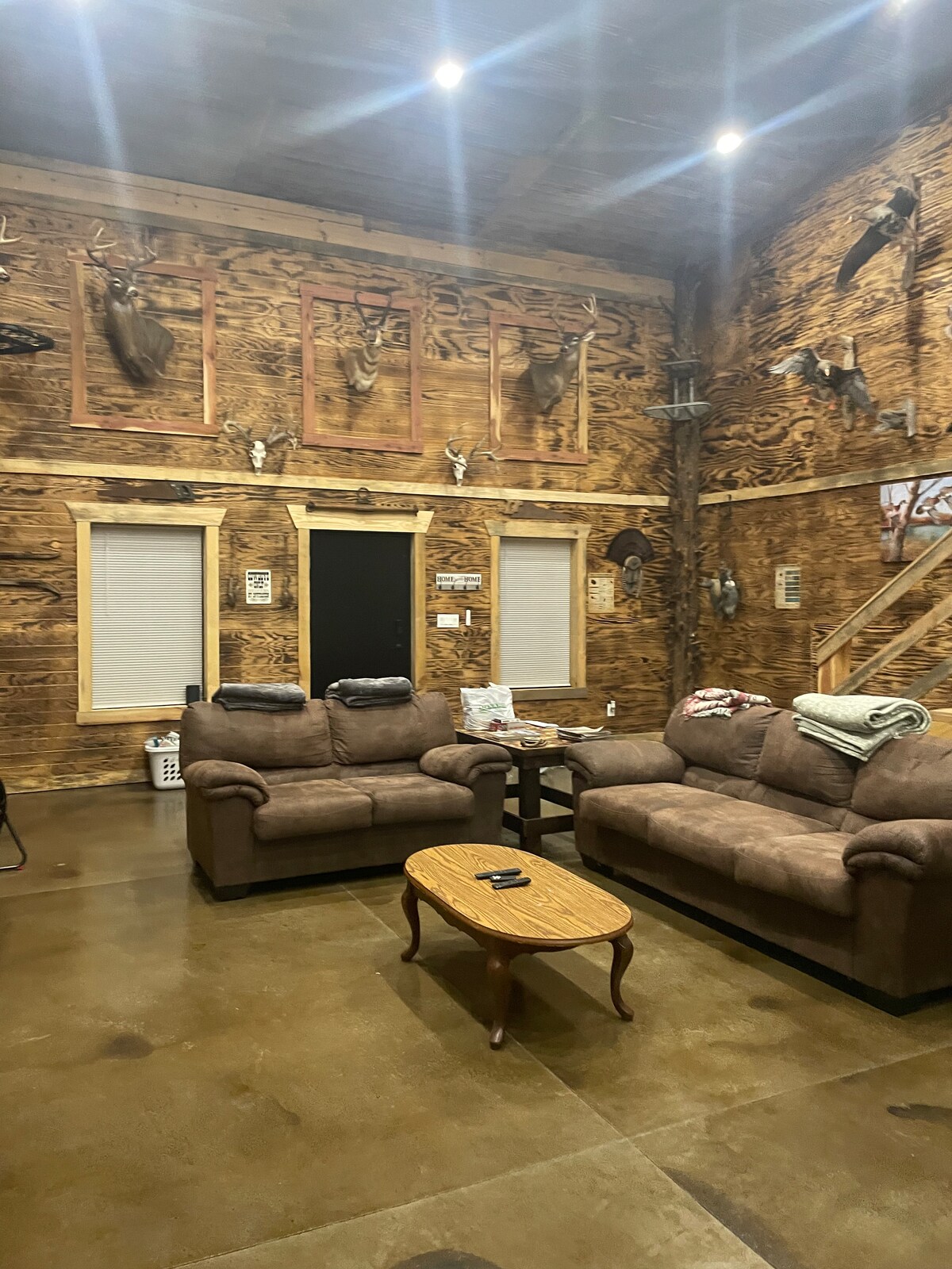 Maligayang pagdating sa aming rustic na may pahiwatig ng modernong tuluyan. Dalawang silid - tulugan tatlong paliguan at isang malaking loft. Walang tangke na pampainit ng mainit na tubig! Napakalaking dalawang lugar para sa garahe. Winch to hoist up your wild game, stainless steel sink and cutting table to handle any wild game while watching tv or listen to music on the 6 zone sound system throughout lodge. Maraming cabinet space at butcher block countertops sa kusina. Gas grill! 8 higaan ay maaaring matulog nang komportable hanggang sa 8 na ang dalawang silid - tulugan na higaan ay isang hari at reyna. Tingnan kami!