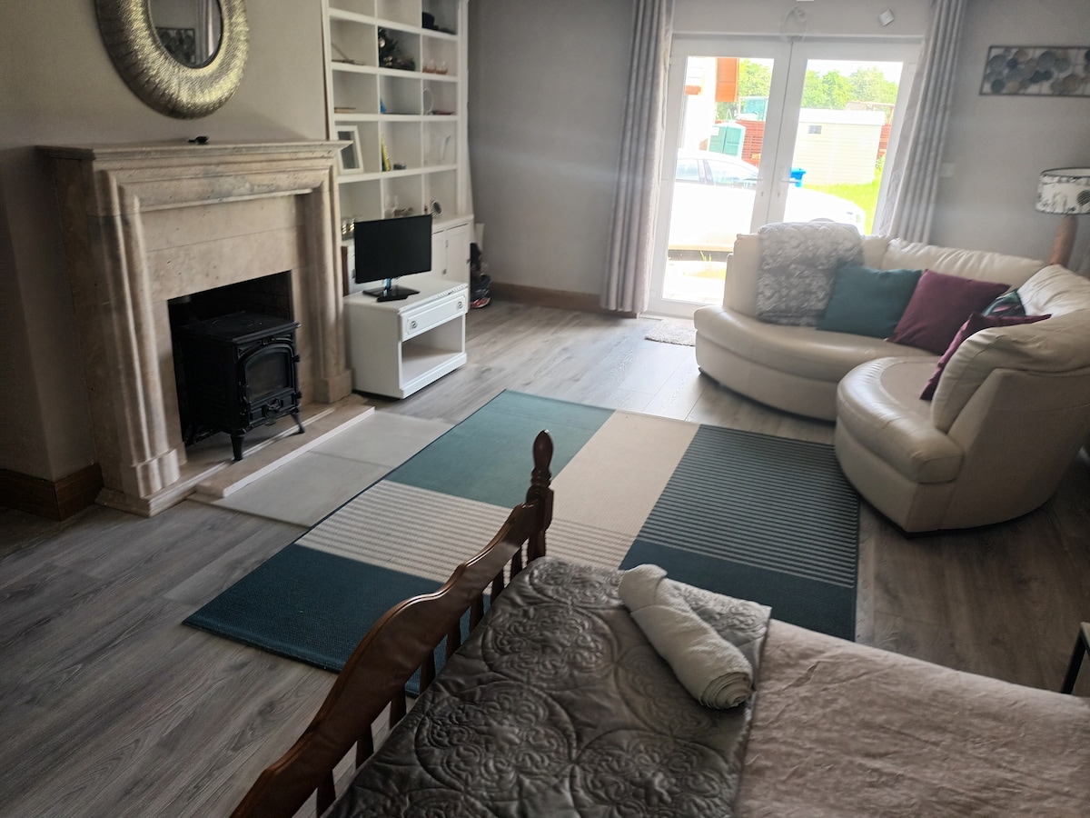 Kalimutan ang iyong mga alalahanin sa maluwag at tahimik na lugar na ito. Matatagpuan 100m off road, ang apartment na ito ay self - contained at independiyente. Walang pinaghahatiang lugar. Binubuo ng Malalaking Silid - tulugan na Ensuite, Malaking Sala at Kusina. Makikipag - ugnayan ka lang sa host kung gusto mo. Paliparan 27min ex trapiko at 1km sa timog ng Intel, West Leixlip. Paradahan sa tabi ng pinto ng pasukan. Mga awtomatikong gate at camera.
