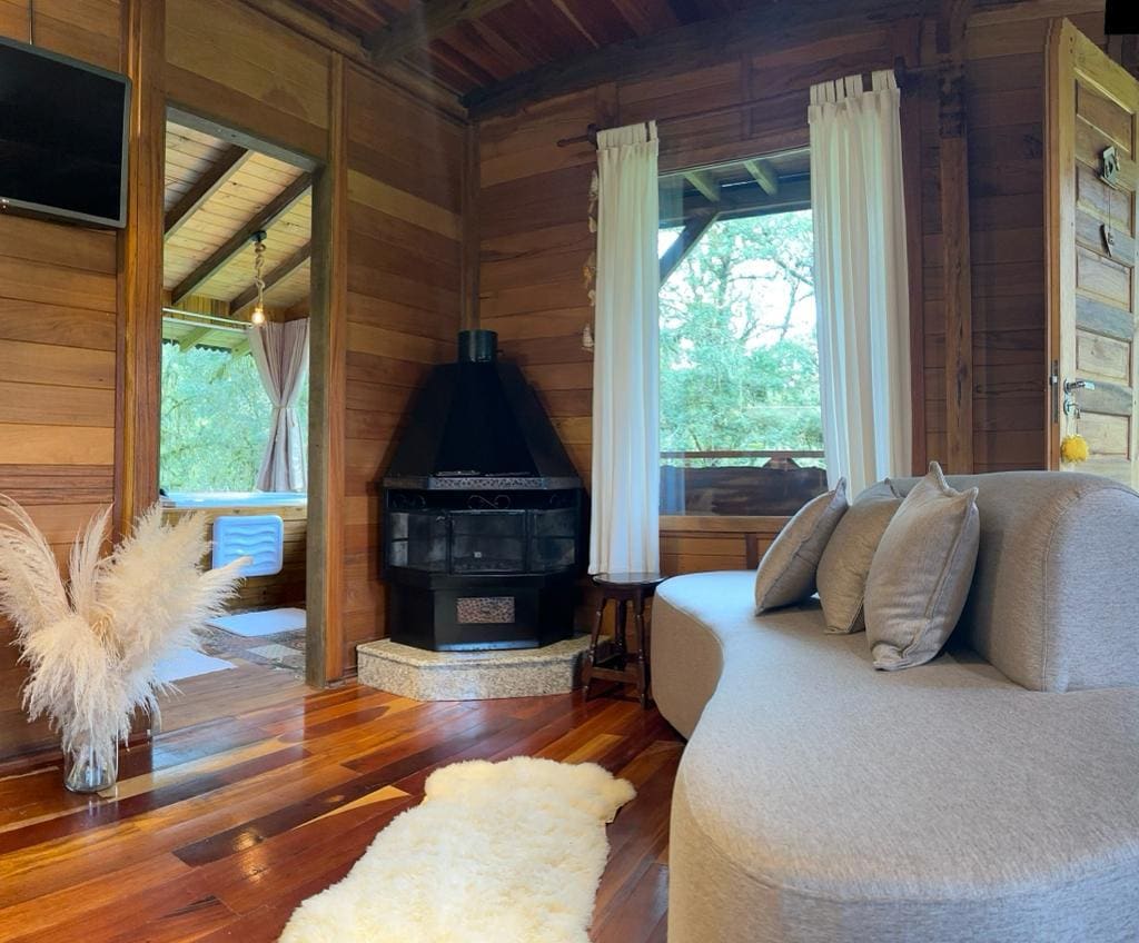 Venha desfrutar de um espaço exclusivo, super aconchegante, ideal para descansar, desacelerar e curtir um tempo de qualidade em meio à natureza! 🌲🌿 Quer surpreender o seu amor? Aqui você tem decoração romântica, uma incrível recepção com bombom, frutas e champanhe! ( e o melhor, sem custo adicional!)🥰 Pela manhã tem um delicioso café da manhã para você aproveitar no deck externo, em contato com a natureza! Tá esperando o que para viver dias inesquecíveis aqui?