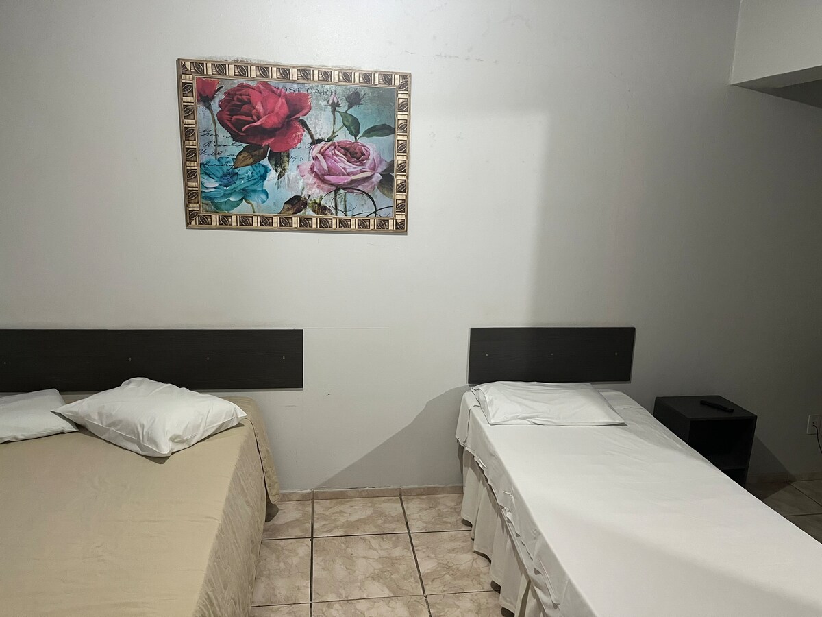 Malaking suite na may double bed, posibilidad na magdagdag ng sofa bed at karagdagang higaan para sa hanggang 4 na tao. Kasama sa presyo kada araw ang almusal, paradahan, higaan, at mga linen sa banyo. Matatagpuan sa downtown Joinville. Malapit sa mga bar, restawran, shopping mall at wala pang 600 metro ang layo sa Cau Hansen Centreventos.