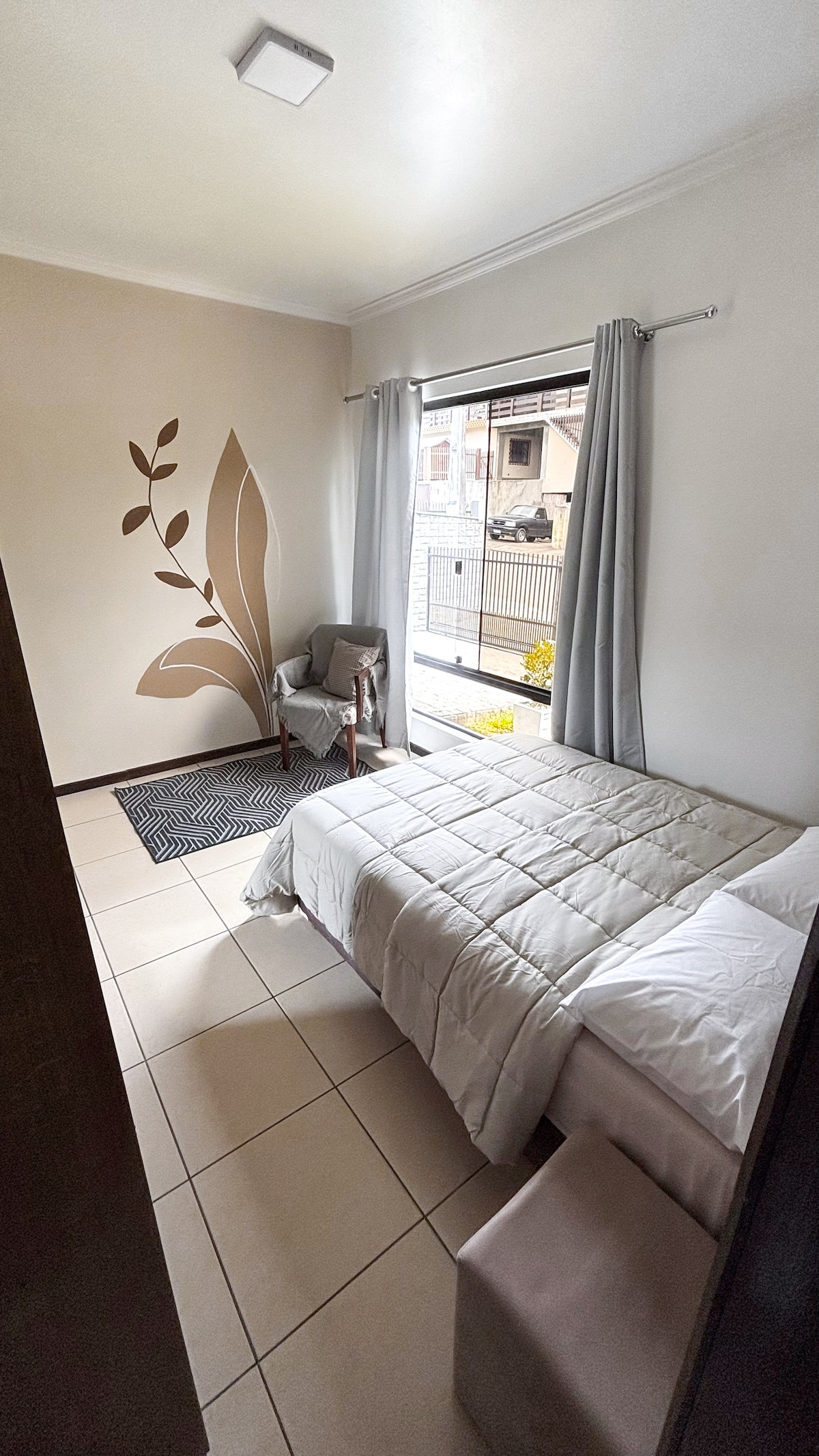 Spacious loft with easy access to BR101 and the bus station. Located in Anita Garibaldi, Joinville. Just minutes from the gastronomic area and city center. - 600mb Fiber Optic WiFi - Space for a home office - Fully equipped kitchen - 11kg washer and dryer, iron and ironing board - Practical and secure self check-in 2 people = queen bed 4 people = queen bed + double sofa bed 6 people = queen bed + double sofa bed + 2 extra beds.