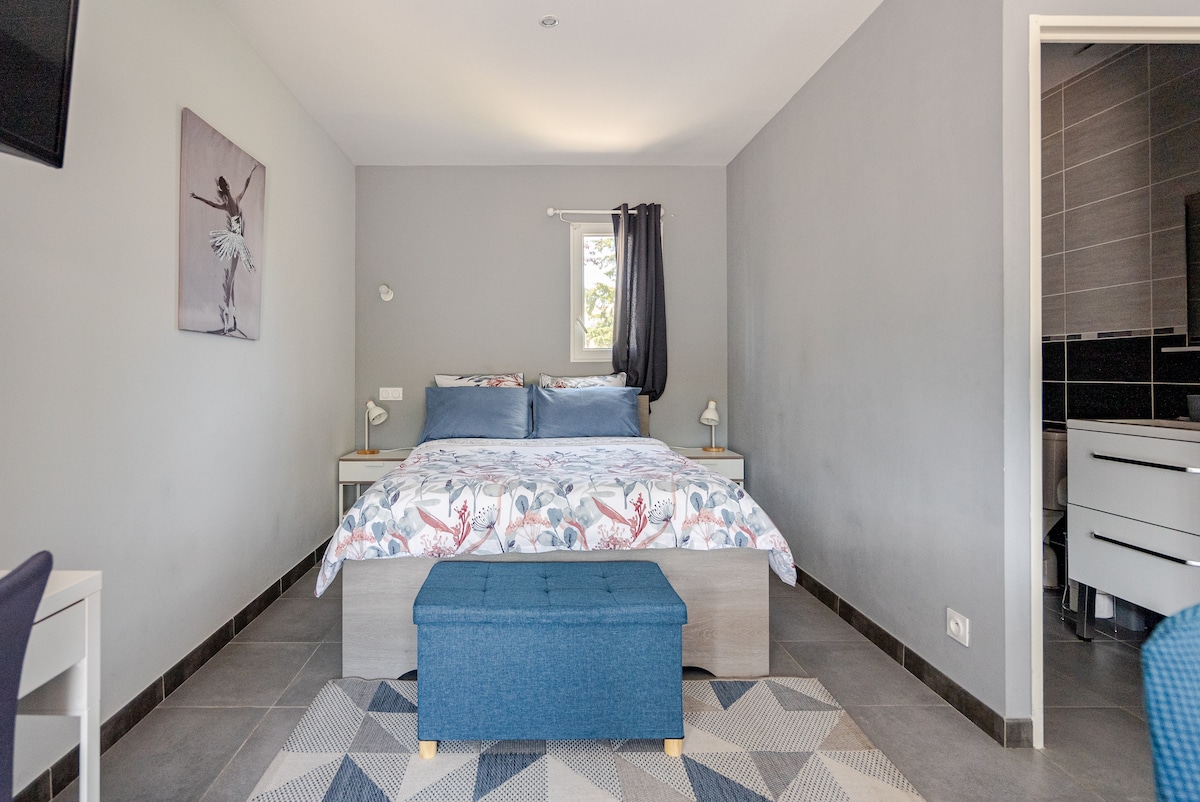 Ang independiyenteng studio ay isang extension ng aming bahay, ito ay 24 m². Maaari mong iparada ang iyong kotse sa aming hardin, isang lokasyon ang nakalaan para sa iyo. Nilagyan ito ng TV, pati na rin ng malaking aparador para maimbak ang kanyang mga gamit. Nilagyan ang maliit na kusina ng refrigerator, microwave, at induction plate. Maliit lang ang banyo pero gumagana. Malapit ang accommodation sa Wave Island water park, Spirou park (10 -15 minuto), Isle - sur - la - Sorgue (20 minuto).