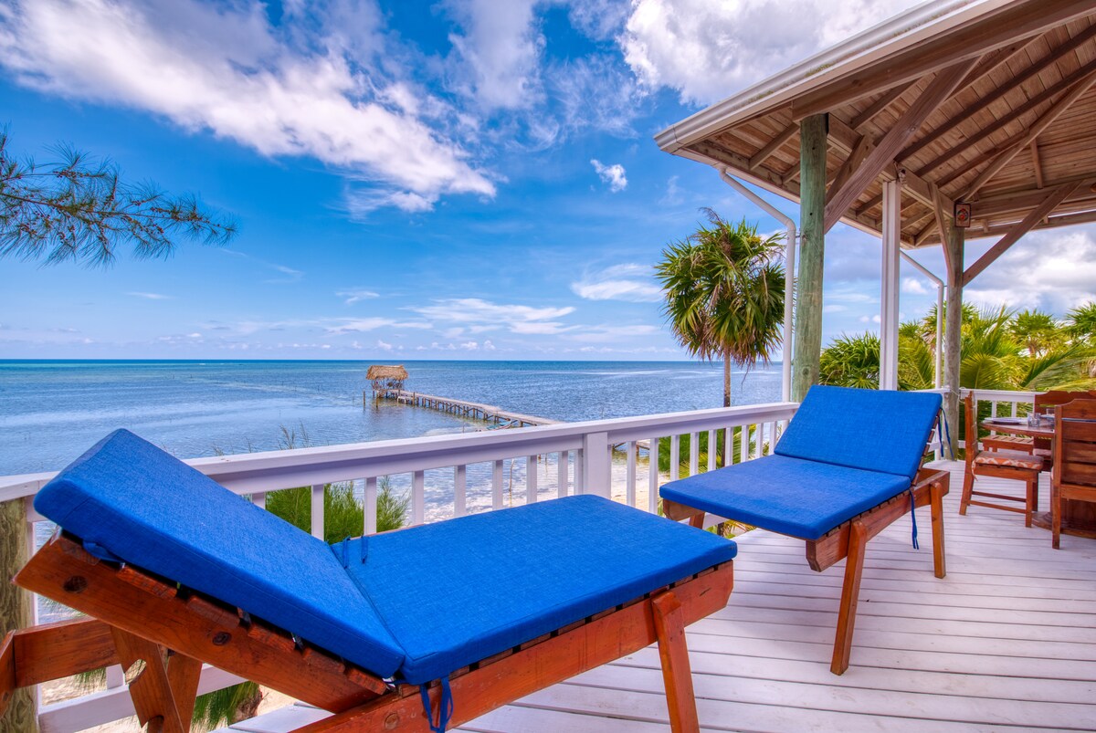 Beachfront home on the calm north shore in a small private community (Milton Point). World class snorkeling/diving on the world's second largest barrier reef at your doorstep. This recently remodeled and modernized 3 bedroom beach house. We have 2 stand up paddle boards, 2 person kayak and snorkel equipment available for you to use any time. There is a plunge pool, private palapa, dock, and fire pit with plenty of seating and hammock hangout area on property for your enjoyment.