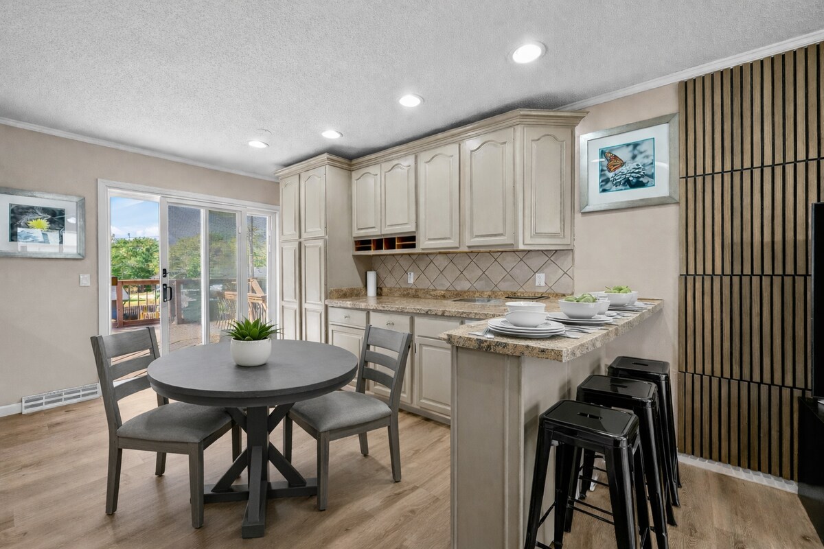 Malapit ang iyong pamilya sa lahat ng bagay kapag namalagi ka sa Aire Leclaire! Nasa maigsing distansya mula sa downtown at 2 bloke mula sa American Pickers. Isang bloke ang layo ng modernong 2 silid - tulugan, 1 bath home na ito mula sa ruta ng parada ng tugfest. Isang barnyard na naging farmhouse noong 1940’s, ang tuluyang ito ay ganap na binago sa modernong kagandahan ng bukid na mayroon ito ngayon. Sa bayan para sa isang araw o ilang, tangkilikin ang mga panlabas na amenidad, lighted deck, outdoor couch, at mesa. Sa loob, isang modernong LED fireplace na may halong rustic beauty.