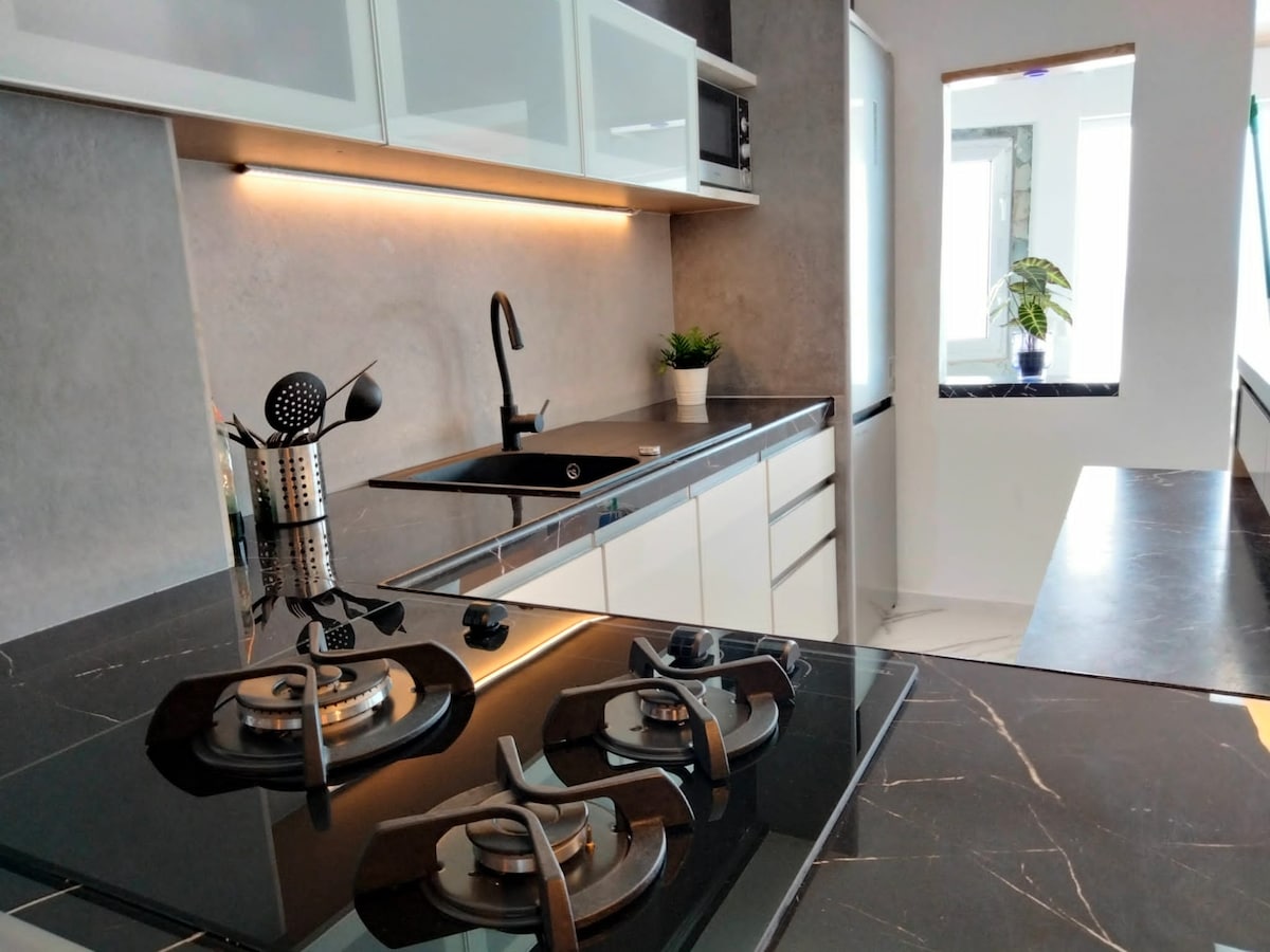 Terrace RENOVATED in May 2024. Elegant and new Studio Design with a huge terrace to enjoy the weather of Gran Canaria. Central, with all services around: supermarket, pharmacy, restaurants, shops. Bus and taxi stop just in front of it. 10 min by car from the airport and 15 min from best beaches. Located in the center of Vecindario, in front of small park place, just beside of Tourism information office. For long stays you can have a cleaning service for a small charge.