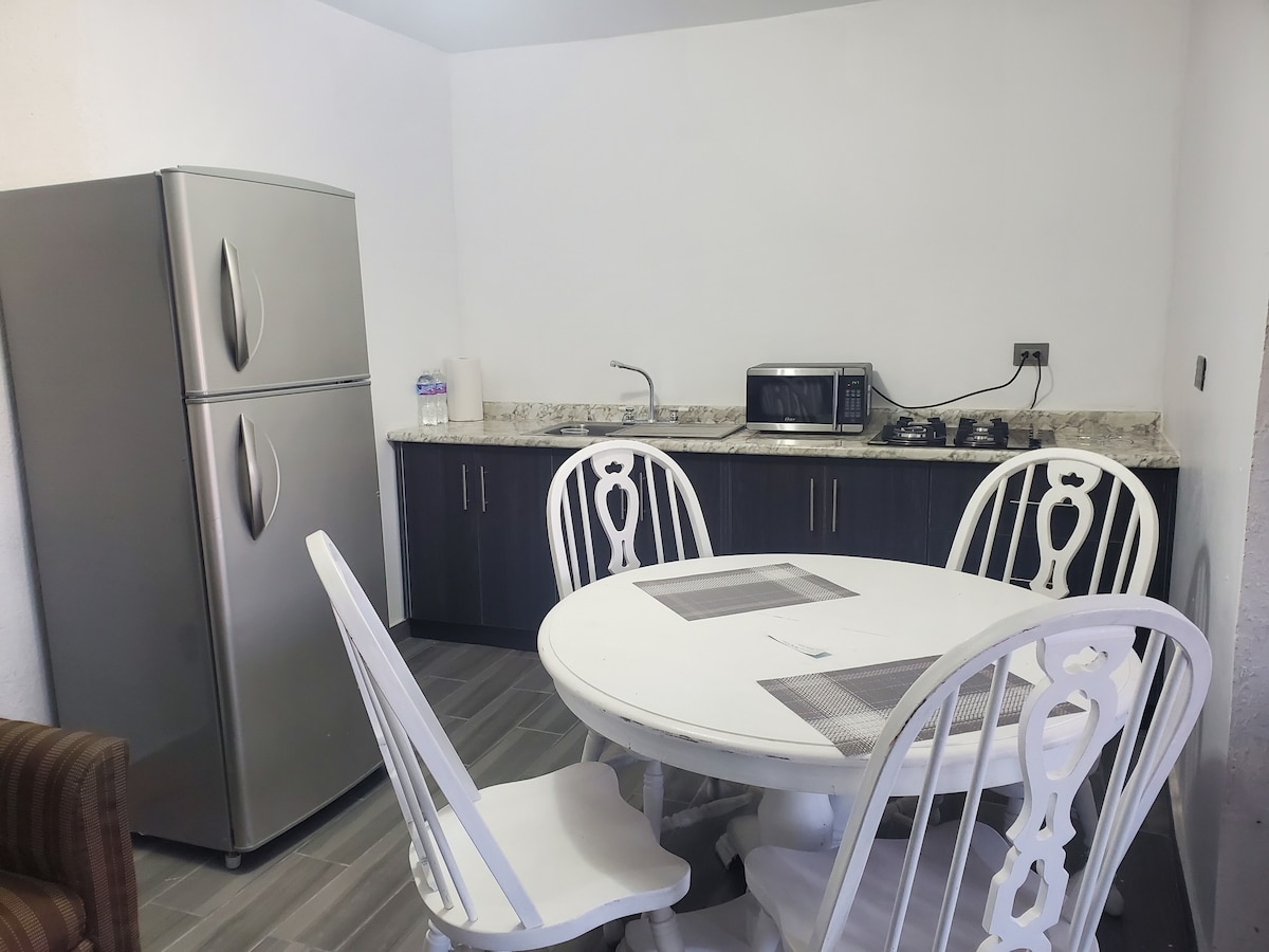 "Komportableng apartment na may isang kuwarto na perpekto para sa mga pamamalagi malapit sa konsulado ng US at CAS (3 minuto sakay ng kotse, 10 minutong lakad) sa C. Juarez. Perpekto para sa mga biyaherong naghahanap ng kaginhawaan. Napakagandang lokasyon (malapit sa mga restawran, mga shopping center sa Misiones/Plaza Nacional, Star Medica Hospital). Naka - air condition na may mini split cold/heat para sa dagdag na kaginhawaan. Mayroon itong: WIFI, NETFLIX, PRIME, Disney+, Dryer at hair straightener. Access sa washing machine at dryer para sa mga pamamalagi na 5 araw pataas.