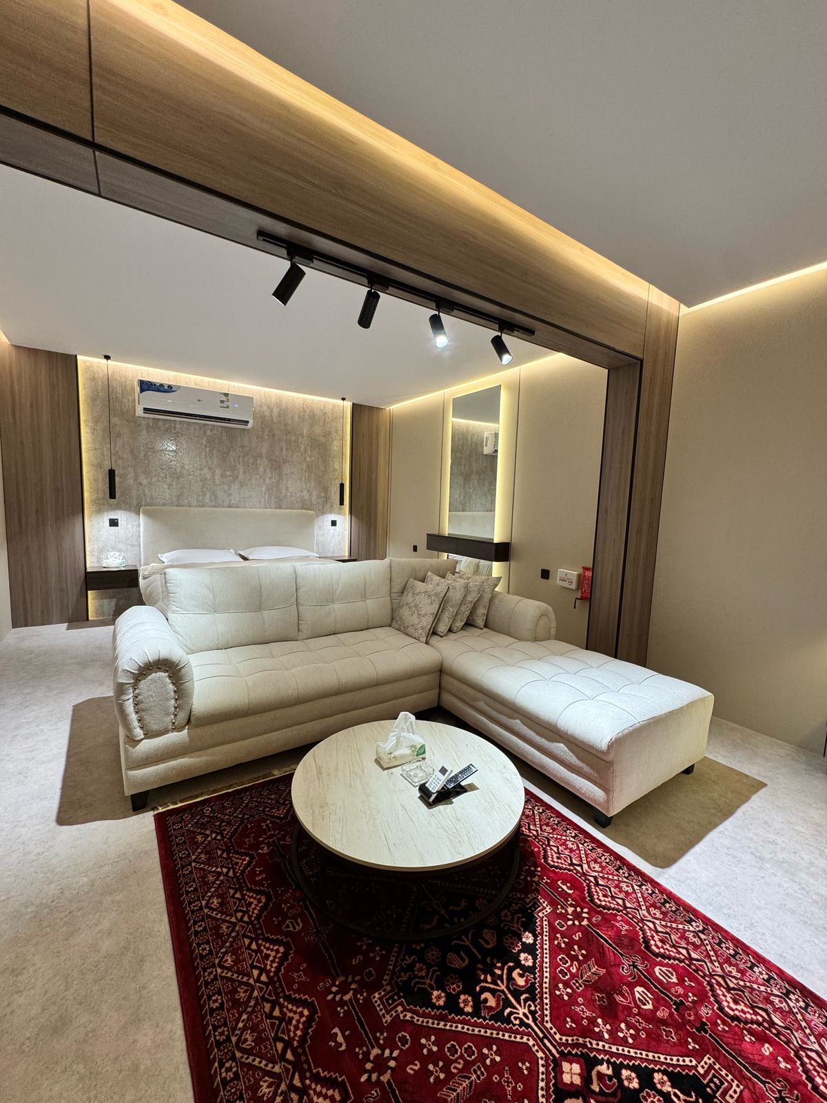 Masiyahan sa isang natatanging karanasan sa isang pribadong silid - tulugan na nag - aalok ng relaxation at kaginhawaan. Kasama sa apartment ang higaan at sala kung saan masisiyahan kang manood sa 65 pulgadang smart screen. Mayroon ding hiwalay na kusina at kape para matugunan ang lahat ng iyong pangangailangan. Lounge ng silid - tulugan at hotel na may matalinong pasukan at komportableng disenyo 5 minutong lakad papunta sa Al - Ahsa Mall 5 minutong lakad papunta sa King Abdullah Park 10 minuto sa pamamagitan ng kotse papunta sa King Faisal University 10 minuto sa pamamagitan ng kotse papunta sa Faculty of Arts 10 minuto sa pamamagitan ng kotse papunta sa Al - Ahsa International Airport 15 minuto sa pamamagitan ng kotse papunta sa istasyon ng tren Malapit ang mga cafe sa mga restawran
