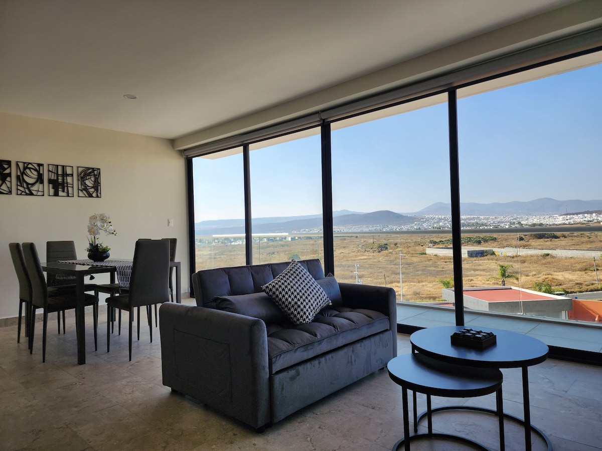 “Nag - aalok ang maluwang na double - height na apartment na ito ng kamangha - manghang tanawin. Mula sa mga bintana nito, mapapanood mo ang iconic na Starbucks sa harap mo, ang mga nakamamanghang paglubog ng araw sa bayan ng Querétaro, at ang mga kalsadang magkakaugnay. Sa gabi, tamasahin ang mga ilaw na nagliliwanag sa lungsod, na lumilikha ng mahiwagang setting. Isang natatanging karanasan para sa mga naghahanap ng kaginhawaan at walang kapantay na tanawin.”