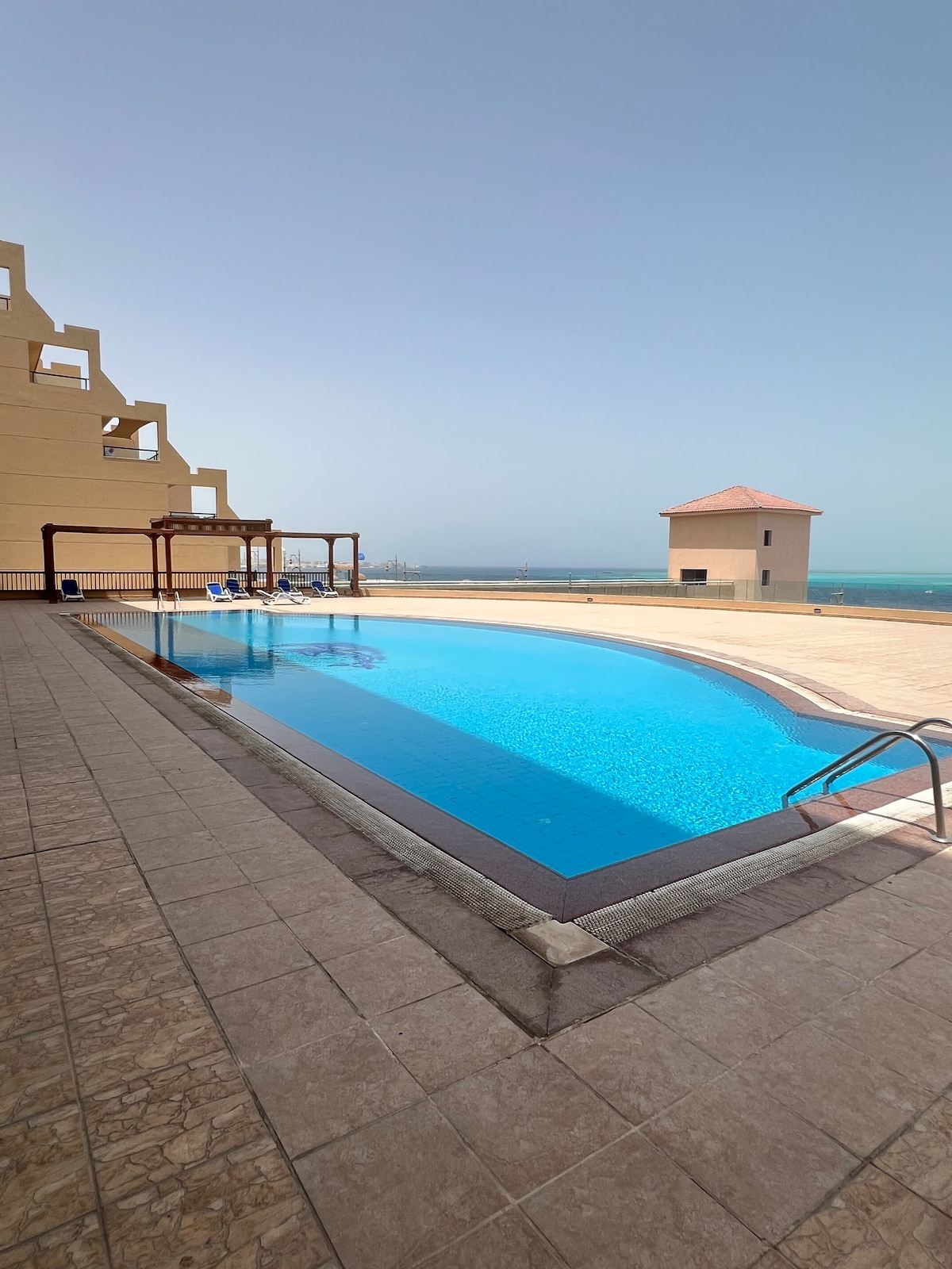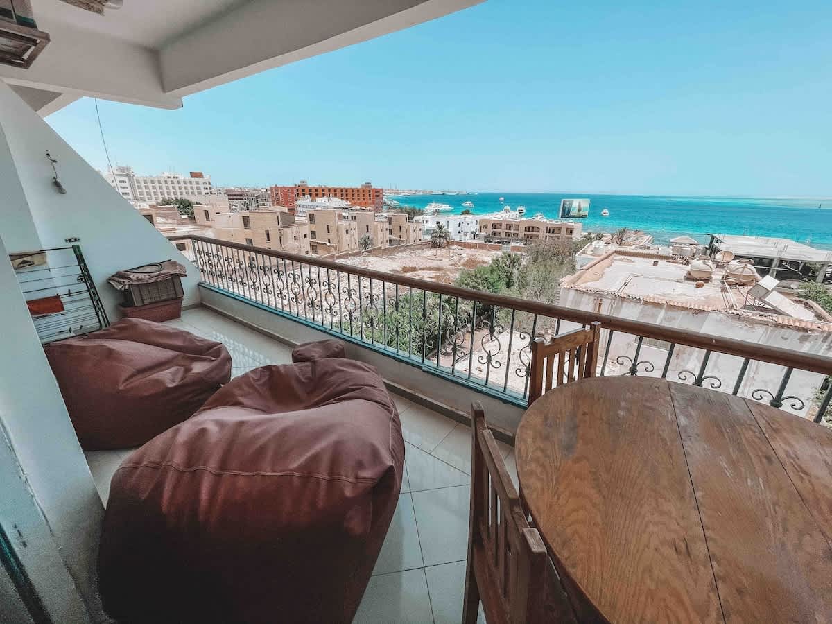 Relax in our cozy sea-view studio in central Hurghada, right by the Red Sea. Perfect for couples, solo travelers, or small families looking for comfort, great location, and resort vibes near the city center. What You'll Like: Free private beach and swimming pool access Red Sea and pool views from your private balcony Prime location on Old Sheraton Street – close to cafes, shops, nightlife & supermarkets Free Wi-Fi, 24/7 security & on-site parking Complimentary shuttle bus within the resort