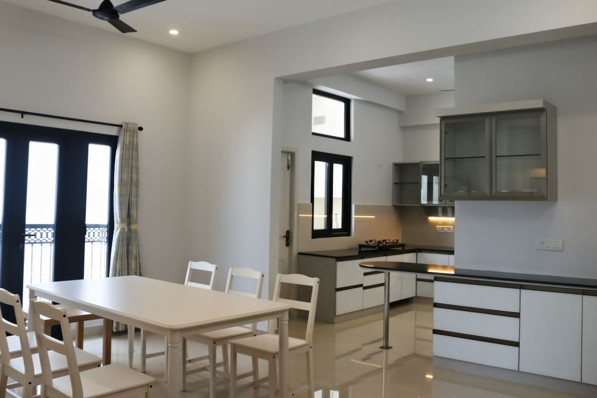 Ang Tara ay ang iyong tahimik na bakasyunan sa pinakamataas na palapag sa Chennai. Matatagpuan sa Lambert Nagar, Alwarthirunagar, ang bagong apartment na ito na may 3 kuwarto, kusina, at sala. May malalawak na tanawin ng parke, maaraw na interior, at lahat ng kailangan mo para sa komportableng panandaliang o mas matagal na pamamalagi—para sa trabaho, pamilya, o medikal na pagbibiyahe. Dalhin ang buong pamilya sa magandang lugar na ito na may maraming lugar para magsaya.