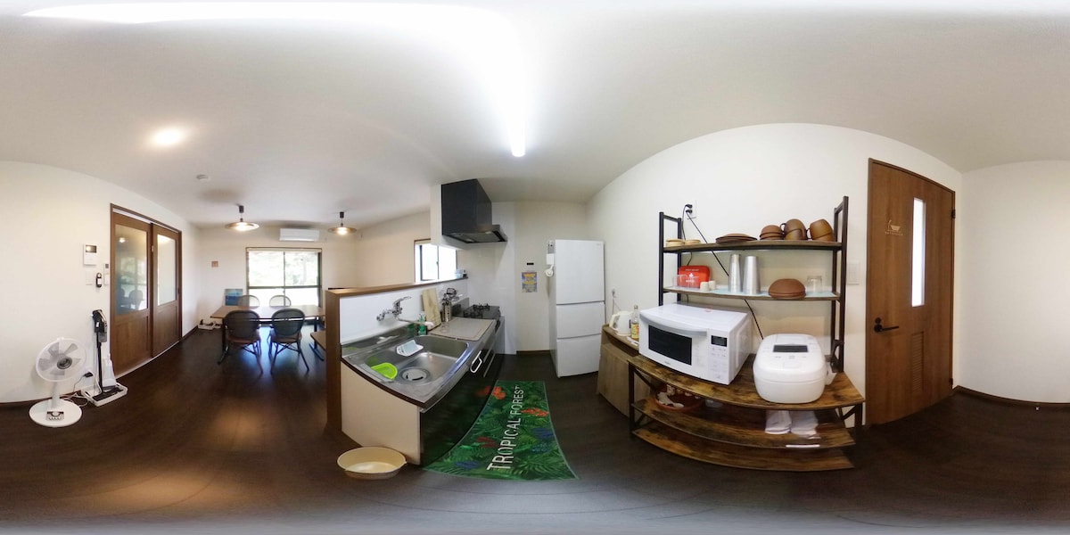 Napapalibutan ang Yakushima ng kalikasan.Kabilang sa mga ito, isang nakakarelaks na pribadong cottage sa kakahuyan.Makikita mo ang karagatan mula sa terrace, maririnig mo ang mga tunog ng kalikasan, at magkakaroon ka ng masayang karanasan na parang napapaligiran ka ng kalikasan.Medyo mahirap ang kalsada, pero mayroon ding kalsadang bundok na humahantong sa dagat sa likod (halos pribado ito at puwede kang maglaro sa dagat).Sa kuwarto para sa bisita, may isang kuwarto para sa dalawang tao.May isang kuwarto para sa apat na tao.May staff room sa semi - basement.Magagamit din ng mga staff ang kusina at playroom.Starlink ang Wi-Fi.
