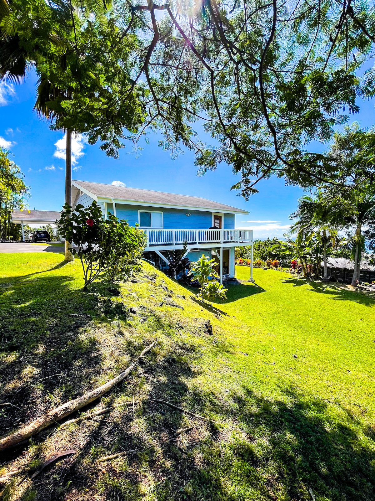 Maligayang Pagdating sa Hale Walua. Gustung - gusto naming ibahagi ang aming Ohana at aloha sa mga kapwa biyahero. Ang iyong apartment ay may pribadong pasukan, tanawin ng karagatan, magagandang lugar na kainan sa hardin na puno ng mga bulaklak at prutas, komportableng queen bed, kitchenette, lounge room, wifi, tv at buong paliguan kasama ang lahat ng mga laruan sa beach na kakailanganin mo sa panahon ng iyong pagbisita sa Big Island ng Hawaii. Ang kagandahan at kapayapaan ay sumasagana. Maraming nangungunang beach sa buong mundo ang nasa loob ng 10 - 25 minutong biyahe.