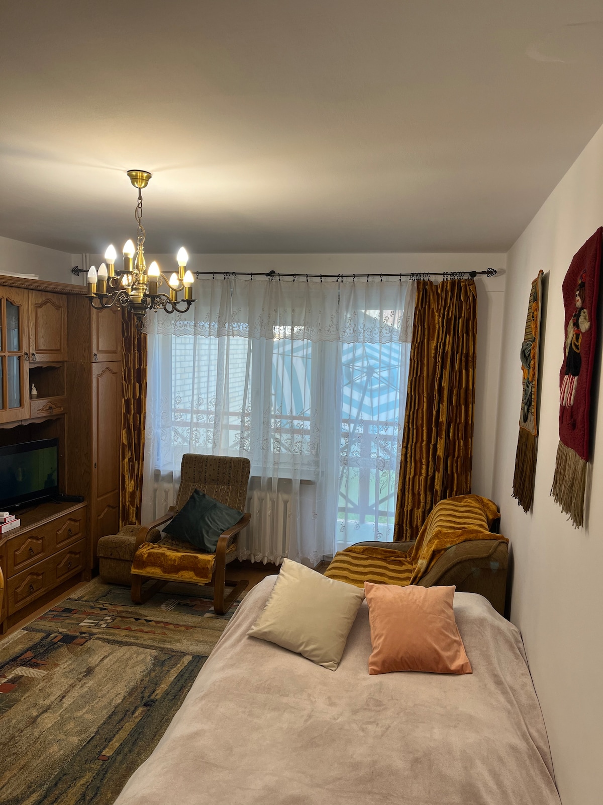 Ang apartment ay malapit sa sentro (7km, 10 minuto sa kotse), malapit sa bus stop at may libreng parking sa harap ng gusali. Ang apartment ay nasa isang housing estate sa isang maganda at tahimik na lugar. Ang loob ay napaka-komportable na may lahat ng kinakailangang kaginhawa, mabilis na Wifi, 55 "TV na may SmartTV (YT, Netflix, HBO GO atbp.), kusina na may kagamitan (mga plato, tasa, baso, kubyertos, takure, kaldero, kawali, oven na may hob, dishwasher, refrigerator, freezer, washing machine, atbp.).