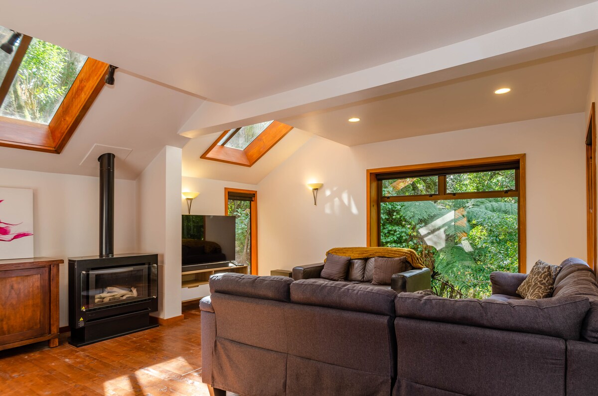 May lilim sa canopy ng mga puno ng macrocarpa sa batayan ng pambansang parke ng Mt Taranaki, ang The Treehouse ay isang santuwaryo sa pagkabata na nasa hustong gulang. Itinayo mula sa mga recycled na materyales, isang muling ginagamit na spiral na hagdan ang magdadala sa iyo sa iba 't ibang antas ng The Treehouse papunta sa isang nakahiwalay na living space na nasa pagitan ng mga puno. Bumalik sa canopy, mag - swoop sa mga swing o mag - shoot pababa sa slide. Pinapatakbo ang self - contained treehouse na ito ng renewable energy at maikling biyahe lang ito papunta sa New Plymouth, mga lokal na beach at bundok.