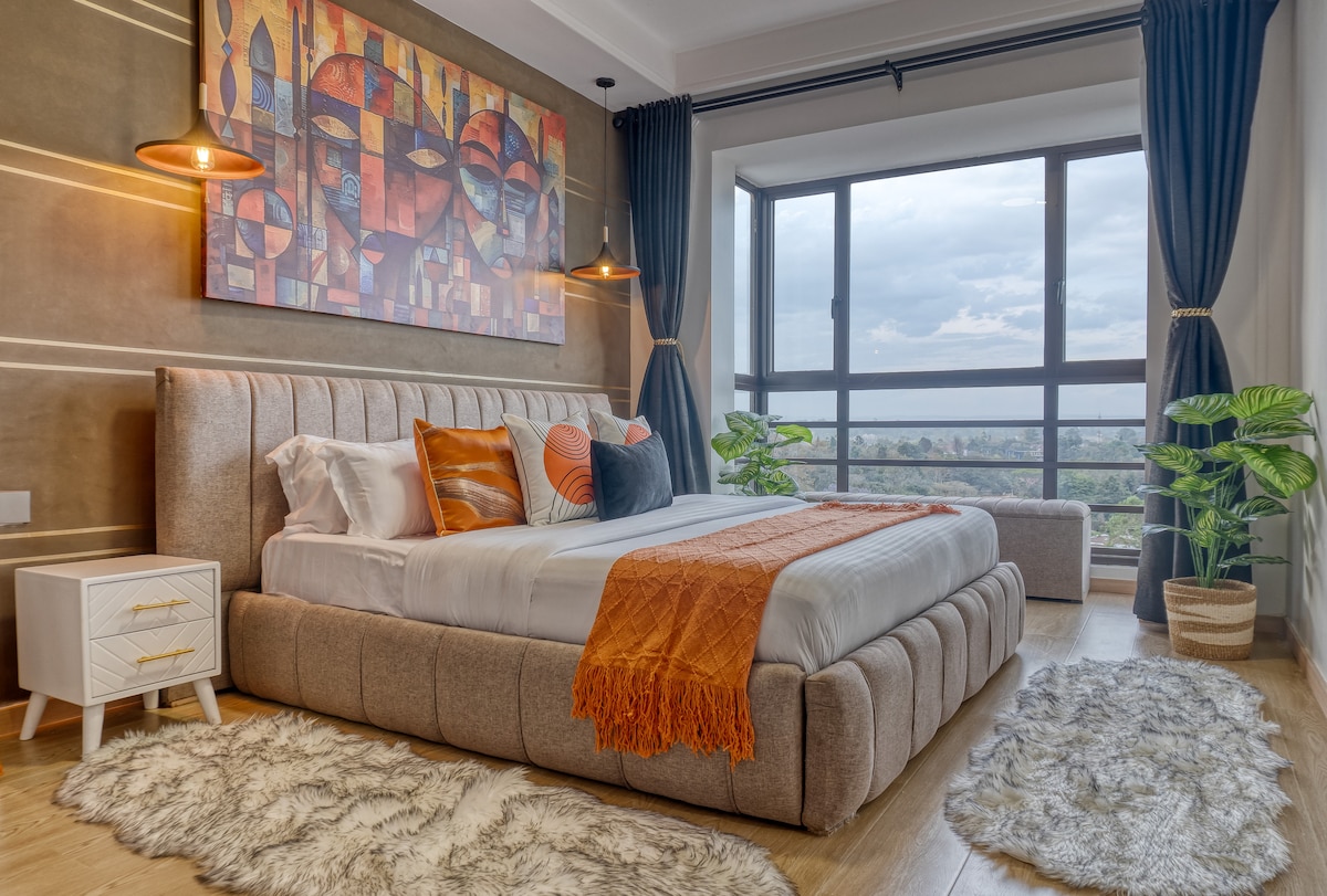 Maligayang pagdating sa 17th - floor Bohemian Home sa Kilimani. Narito ang nasa menu: 🌅Ika -17 palapag na paghinga habang tinitingnan ang paglubog ng araw 🛒🛍️paglalakad papunta sa Yaya Center kaginhawaan sa 🛋️ pribadong balkonahe Gym 🏋🏾♀️na kumpleto ang kagamitan 🏌🏽♂️⛳️indoor golf 🏓Ping Pong 🚀Mabilis na WIFI 🍿Netflix 💼Lugar na pinagtatrabahuhan 🧑🏾🍳Turkish restaurant sa lugar Mga serbisyo ng 💆🏾♂️💆♀️ Spa & Massage sa rooftop 🎲 📚 Mga Aklat at Laro 🎨🪴Orihinal na sining at halaman ☕️Coffee maker kusina 🍳na kumpleto sa kagamitan 🛌Maaliwalas na Chiropedic mattress 🧹Mga serbisyo sa paglilinis sa iyong kaginhawaan, & higit pa…