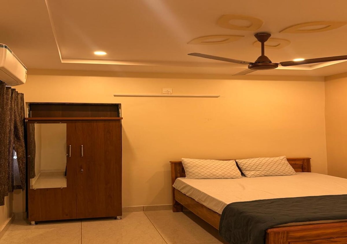 Charming Stay Near Datta Temple Located just 500m from Datta Temple, our 2-year-old property offers flexible booking—reserve individual rooms or the entire space. Spacious bedrooms with built-in cupboards, 3 bathrooms, and a fresh ambiance ensure comfort.with extra beds, hot water, and other amenities available on request. Centrally located next to Union Bank, it’s close to temples. Ideal for families and groups. Note- no parking, lift is not available, alcohol and smoking not allowed.