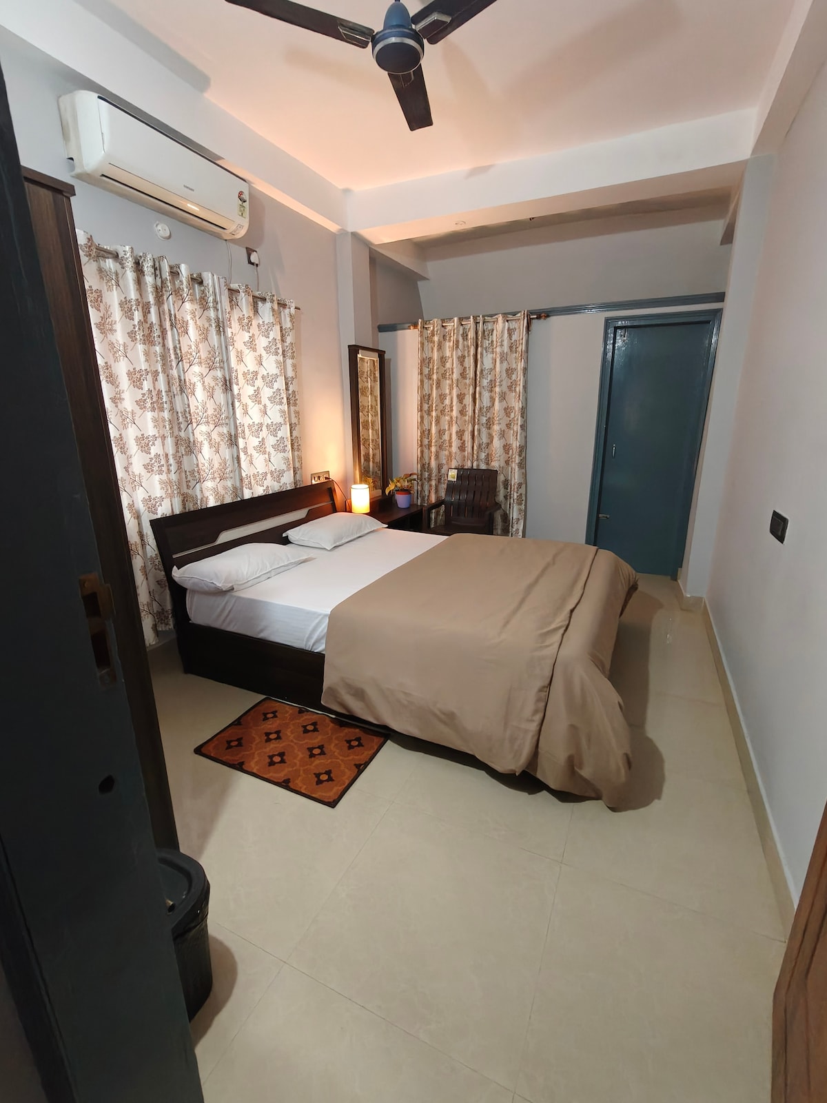 Welcome to our cozy and thoughtfully designed 3-room apartment, perfect for families, groups, or remote workers! Each bedroom features a comfortable queen bed, ceiling fan, wardrobe with locker, and its own unique vibe Room 1: Entertainment room with TV Room 2: The only room with AC workspace & story books Room 3: Recreational space to relax or stretch Enjoy a functional kitchen, high-speed WiFi, a common area with both Indian & western toilets, separate bathroom with geyser, and free parking!