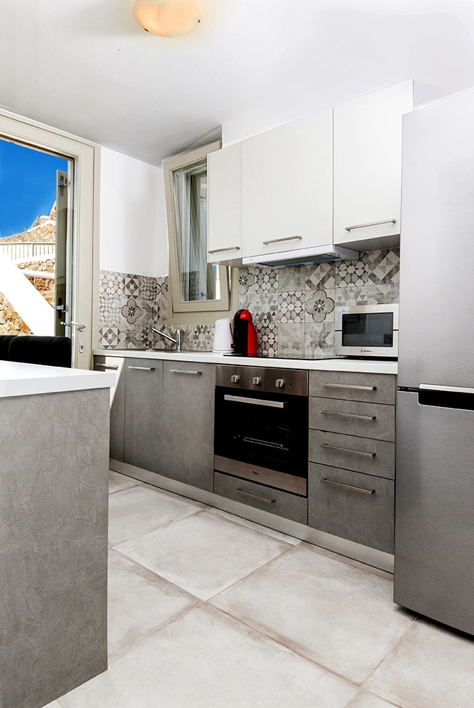 The seductive,brand new house is a luxurious heaven for tranquil repose, The Myconian's architecture house consists of 2 bedrooms with king size double beds (splittable to single beds), 2.5 bathrooms, living room with 1 sofa , satellite TV, free WI FI Internet - dining room, fully equipped kitchen, terrace with wooden table, outdoor jacuzzi , garden and private parking area.
