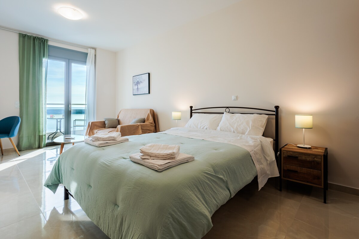 Ganap na naayos ang Olea apartment 3 noong 2021. Ang functionality at aesthetics sa iyong dekorasyon ay tinitiyak ang kalidad at kaginhawaan sa panahon ng iyong pamamalagi! Maliwanag, kumpleto sa ayos at kumpleto sa gamit na bahay. Binubuo ito ng 1 silid - tulugan, nakahiwalay na kusina, 1 banyo at maliit na balkonahe. Mayroon itong mga modernong kagamitan, pinong linen at branded na pampaganda. Bago ang lahat ng de - kuryenteng kasangkapan, may aircon, mabilis ang wifi at may subscription sa NETFLIX ang TV.