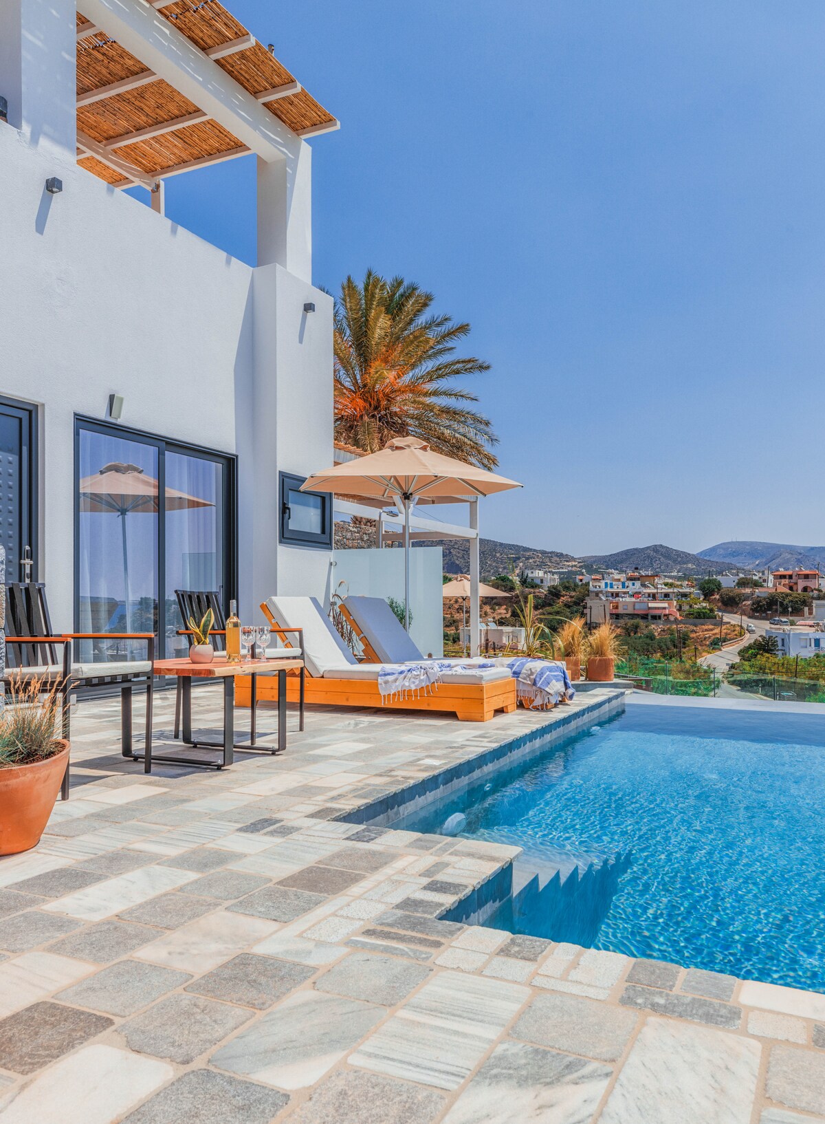 Mag - enjoy sa tahimik na bakasyon sa dagat! Gumising sa umaga habang pinagmamasdan ang iyong higaan na may natatanging pagsikat ng araw. Magrelaks sa Jacuzzi sa labas, sa pinaghahatiang pool, mga terrace, nakikinig sa tunog ng mga alon at awiting ibon. Ang mga tanawin sa lahat ng dako ay katangi - tangi. Sa harap mo ang walang katapusang asul ng Dagat Cretan, sa paligid mo ang kahanga - hangang katangian ng Cretan. Mula sa dalawang sala hanggang sa mga silid - tulugan, silid - kainan, kusina, banyo, shower sa labas, nakakamangha ang tanawin.