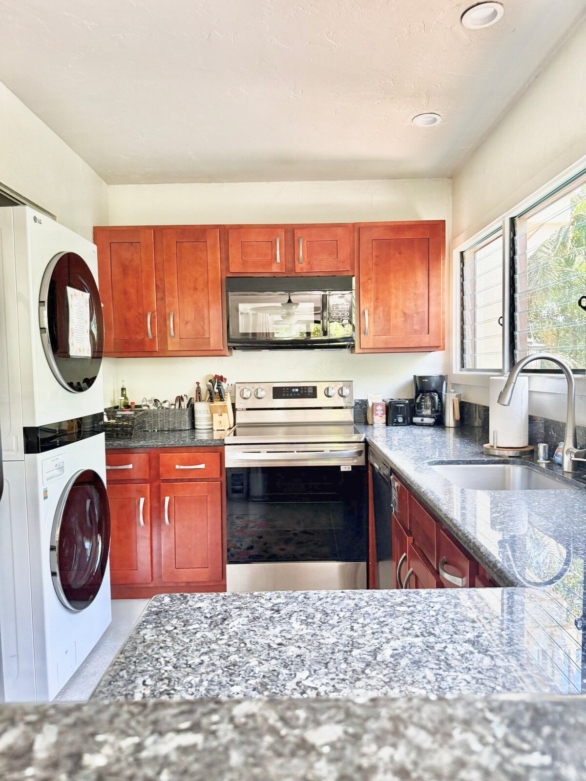 Full kitchen, washer and dryer inside unit