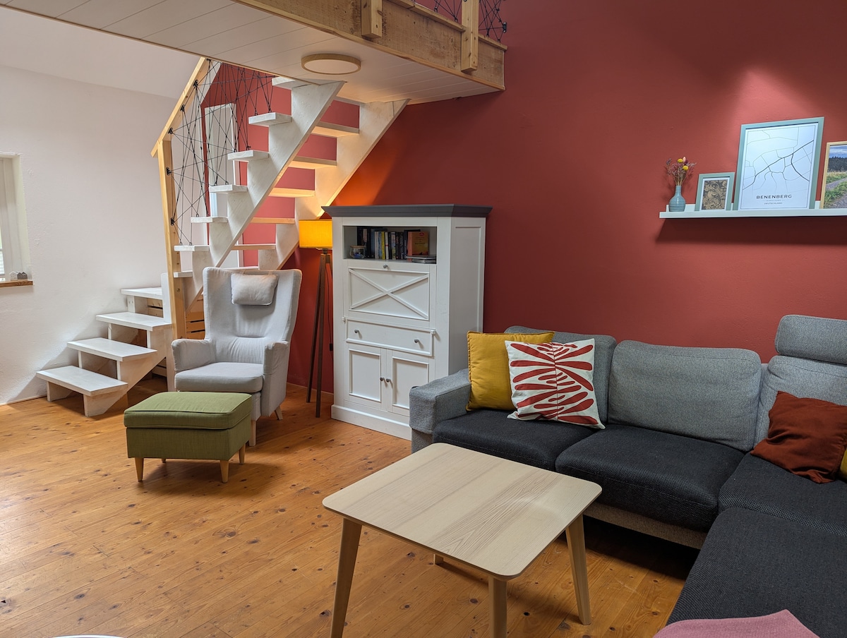 Puwede kang maging komportable sa apartment na ito na may sarili mong pasukan. Ang lahat ng sahig ay gawa sa natural na kahoy, ang mga pader ng putik na brick, ang kapaligiran ng kuwarto ay napakasaya. Sa balkonahe sa timog - kanluran mayroon kang napakagandang tanawin sa ibabaw ng wildly maintained property, kagubatan at fallow deer enclosure ng kapitbahay. Available para magamit ang outdoor area at sauna (presyo). 4 km lamang ang layo ng apartment mula sa makasaysayang sentro ng bayan ng Bad Münstereifel. Relaxation - Sports - Kalikasan - Pamimili