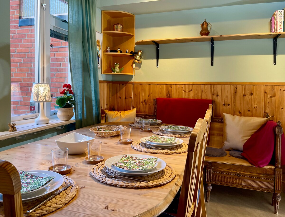Ljust och rymligt radhus med utmärkt läge - perfekt för familjeträffar, arbetsresor eller projektuppdrag. Gratis parkering för 2 bilar - 1 plats i garage och 1 på parkeringsplats, båda ca 100m från boendet. Grannskapet är lugnt och familjevänligt. Flera välbesökta lekplatser inom hör och synhåll. Lätt att ta sig till Kalmar, Öland och glasriket. 10 minuter från Kalmar och Kalmar flygplats. Bra buss- och tågförbindelser. Nära till både natur och stad. Ett flexibelt boende som passar alla.