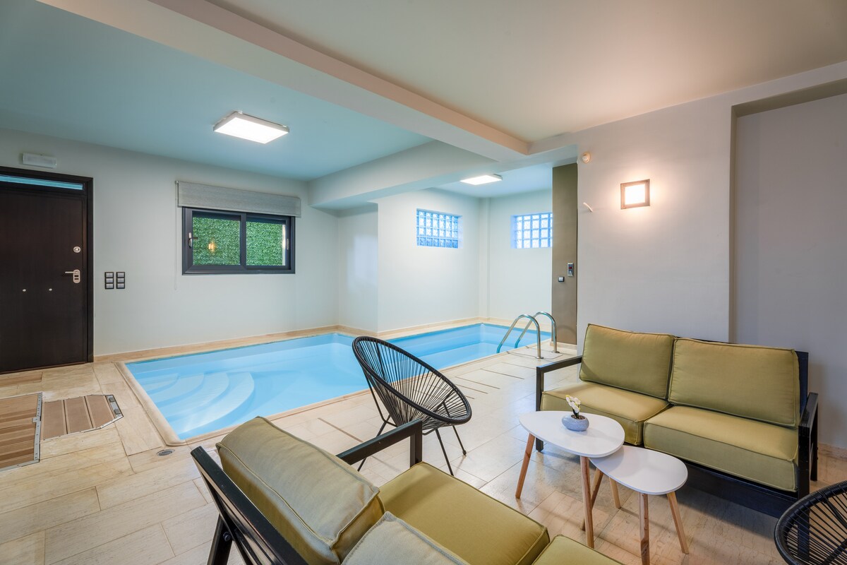 Indoor pool villa Lagonisi | 4 -BDRM | malapit sa beach
