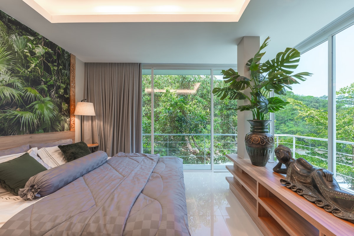 🌴 Welcome sa The Kamala View Ilang minuto lang ang layo sa Kamala Beach, at idinisenyo ang komportable at parang resort na bakasyunang ito para sa kaginhawaan at kaunting luho. 📍 Perpektong Lokasyon • 3 minuto papunta sa Kamala Beach • 5 minuto papunta sa Café del Mar • Madaling puntahan ang mga tindahan, restawran, parlor para sa masahe, at convenience store • 10 minuto papunta sa Patong, pero sapat na malayo para maging tahimik at payapa 💑Tahimik at ligtas na gusali na mainam para sa bakasyon ng mag‑asawa 🌴Mag‑relaks, mag‑relax, at magbalik‑tanaw—magpareserba ng tuluyan.