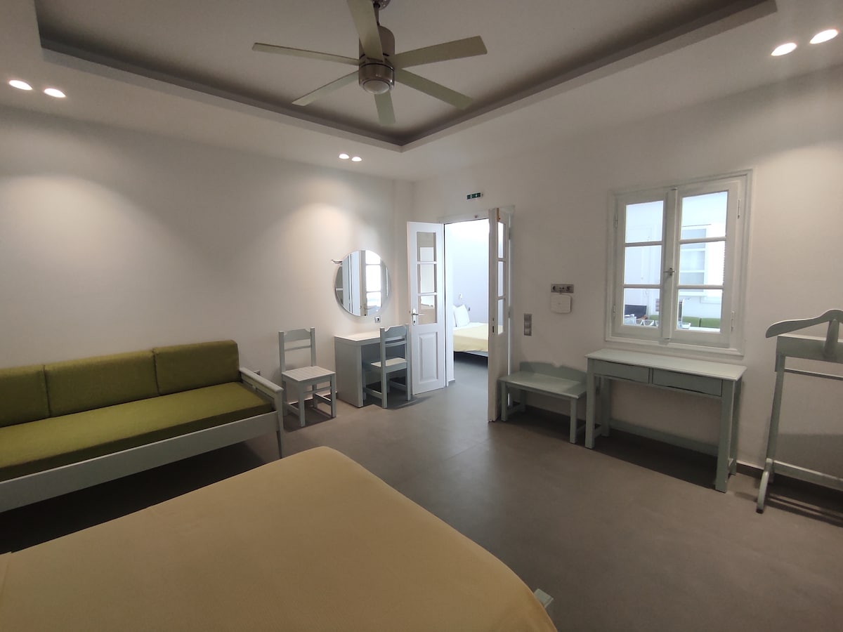 Ang apartment ay matatagpuan sa Kamares, 1 km ang layo mula sa daungan. Maaaring tumanggap ng hanggang 3 tao. Ang pagsasama-sama ng mga elemento ng kalikasan, ang malinaw na tubig ng dagat kasama ang shared infinity pool, ay nag-aalok ng isang di malilimutang pananatili sa mga bisita. Ang tanawin mula sa bakuran, ang katahimikan, ang kaakit-akit na pagiging hiwalay ng lokasyon at ang mga serbisyo ay ginagawang isang buong karanasan sa tag-init ang iyong pananatili! May access sa dagat at sa isang shared pool.