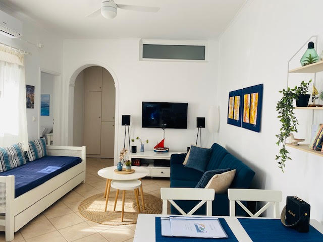 Ideal location just 50 meters from Kamari beach, near the finest hotels, bars and restaurants.The neighbourhood is quiet and everything you need is in a very short distance.Plenty of mini markets and supermarkets around, local bus station 3 min walk, public parking near the property.The apartment is fully renovated in a combination of a very welcoming modern and traditional Santorinian design.This apartment consist of one with fully equipped kitchen) and one private bathroom.