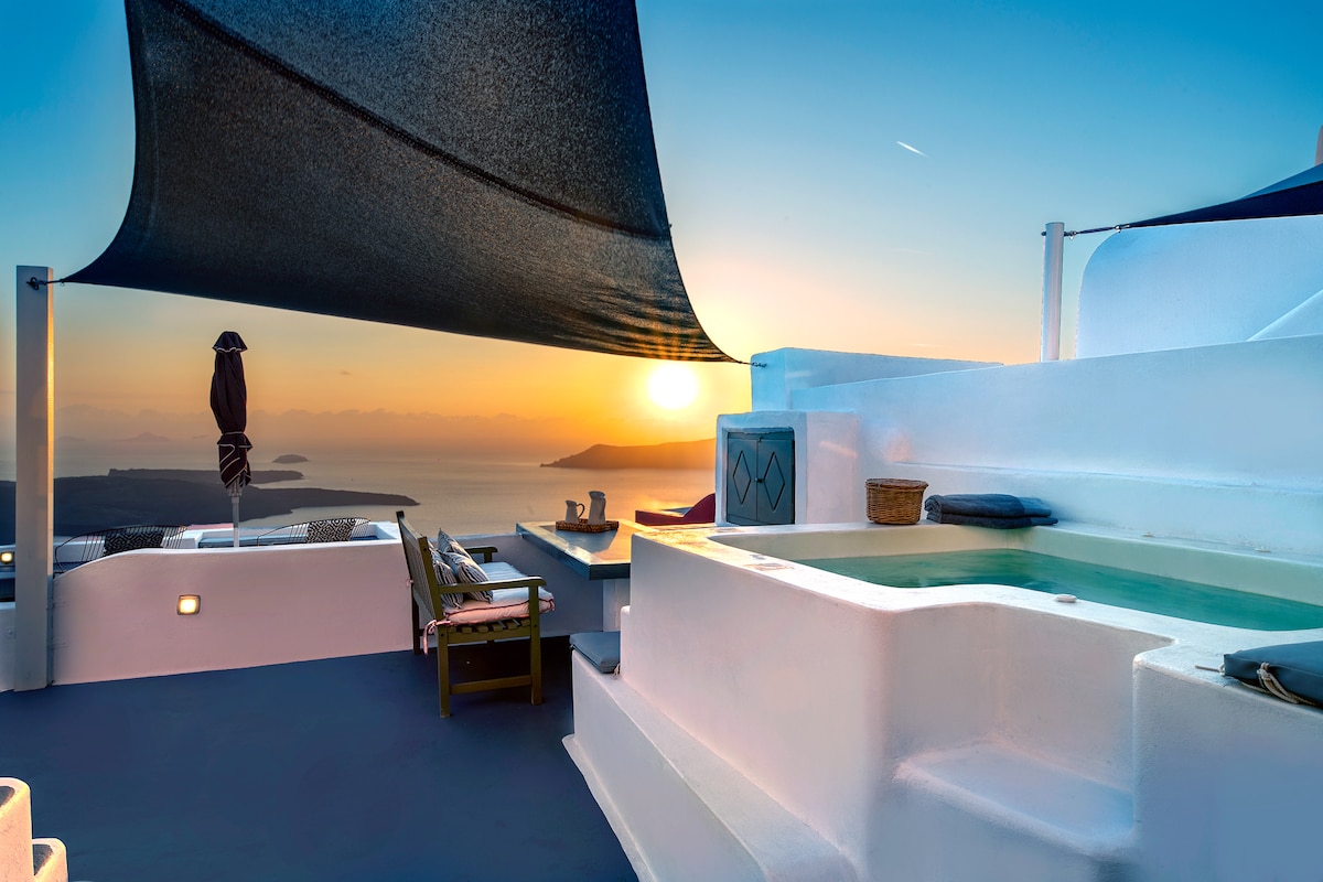 Mga suite na may tanawin ng caldera at hot tub sa labas
