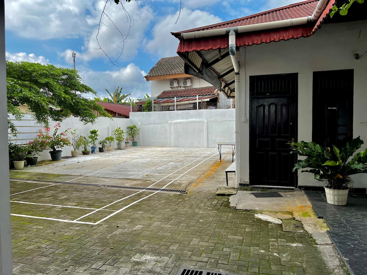 Welcome sa ThePassdhamHouse, isang tahimik, maluwag, at angkop na isang palapag na tirahan para sa mga pamilya at biyahero na gustong maging komportable na parang nasa sarili nilang tahanan habang nasa Pekanbaru. Matatagpuan sa sentro ng lungsod at ilang minuto lang mula sa Sultan Syarif Kasim II Airport, mainam ang tuluyan na ito para sa mga bisitang gustong mabilisang makapunta sa mga lugar para sa pagkain, pamimili, at paglalakbay—pero nasa isang tahimik at kaaya‑ayang kapitbahayan pa rin.
