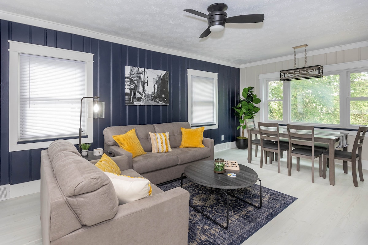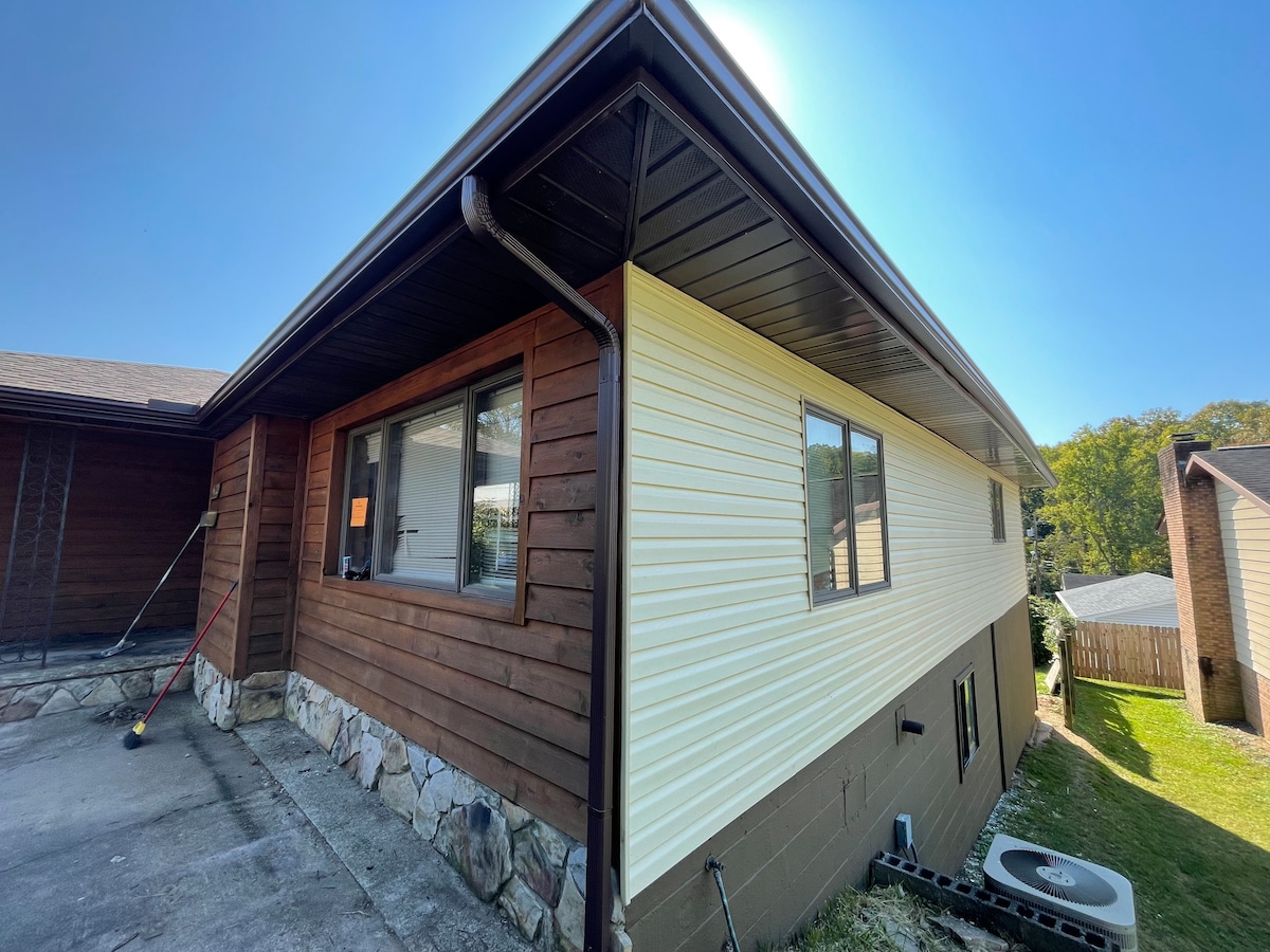 Ganap na na - renovate ang 3 br 2 bath home, na pinalamutian ng mid - century vibe. Matatagpuan sa lugar ng Lungsod ng Kanawha sa Charleston WV. Malapit ang property na ito sa mga pangunahing interstate, CAMC Memorial Hospital, mga grocery store, mga botika, mga restawran at State Capital. Libre at nasa lugar ang paradahan sa kalye. Mag - empake at maglaro na available para sa mga maliliit at isang magandang beranda sa harap para sa tasa ng umaga ni Joe o isang magandang baso ng alak sa gabi habang nagpapahinga mula sa iyong araw. Nasa lugar ang gas fireplace at washer at dryer.