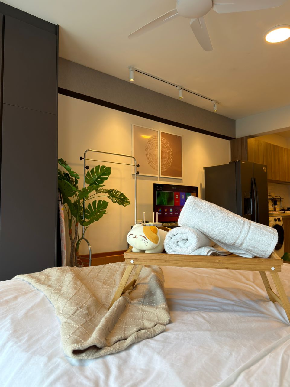 Welcome to our cozy and muji style 1+1Bedroom 4pax homestay !! Our homestay located in the heart of Bukit Indah. Whether you're here for business or leisure, our space is designed to provide you with comfort and convenience. ❤️ Our unit is conveniently located near Aeon Bukit Indah, Legoland or JB town. There's plenty of restaurants, cafes and massage center, cinema, entertainment and etc in the neighborhood. Walking distance also can go aeon bukit indah and lotus supermarket 🚶🏻🛍️