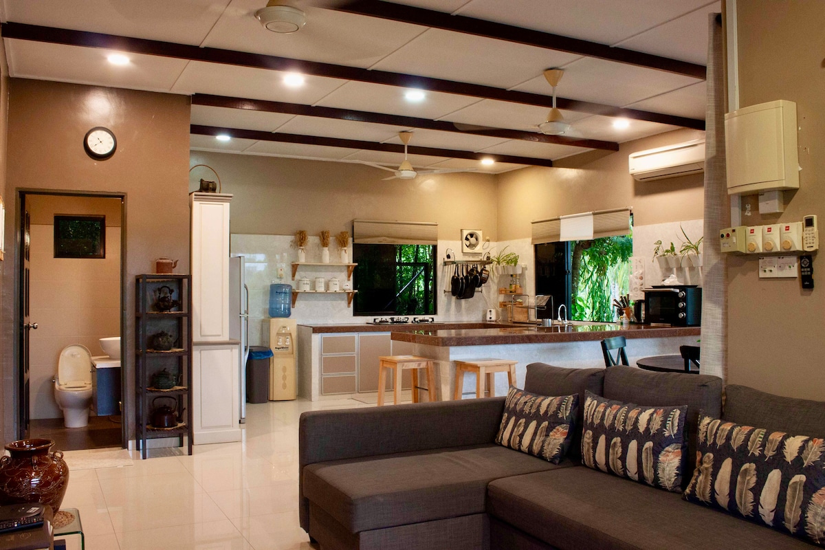Magluto ng pagkain sa bukas na kusina at kumain sa mahabang hapag kainan na may tanawin. Kasama sa tuluyang ito ang malawak na balkonahe na nakatanaw sa ilog, access sa mga trail ng pagha - hike sa kagubatan at ilog, patyo na may mga hardin ng araw, at bukas na plano na lumilikha ng komportableng tuluyan. Makinig sa mga tunog ng mga huni ng ibon, panoorin silang humuli ng mga insekto o mangolekta ng nectar mula sa mga namumulaklak na halaman. Makinig sa mga nakapapawing pagod na tunog ng umaagos na ilog. Mga piknik na lugar sa kahabaan ng ilog Nakatayo sa Batang Kali, ang Kg Hulu Rening ay isang tahimik na nayon na may mga bahay na nakakalat sa paligid ng mga berdeng tanawin ng burol. Ang bayan ng Batang Kali, Hulustart} Bharu at Kuala Kubu Bharu ay isang maikling biyahe lamang sa kotse at may maraming mga restawran. Pinakamainam na maglibot sakay ng kotse. Mga kalapit na atraksyon: Mundo ng Phalaenopsis (Moth Orchids), Ulu Yam - 12km (16 - min drive) Genting Highlands Premium Outlets - 25km (30 - min drive) Resorts World Genting - 32km (40 - min na biyahe) Kuala Kubu Bharu - 21km (30 - min na biyahe) Chiling Waterfalls - 33km (40 - min drive)