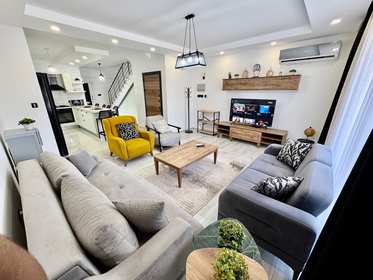 Why choose this Apartment? Casinos: ●3.3km-KayaPalazo ●2.7km-MeritPark ●5.6km-MeritCrystal Near: ●3km-Escape Beach ●4km-Kervansaray Beach ●2.6kmGAU ●2.4km-Alsancak NationalPark ●Modern ●Self Check-in ●Proffesionaly cleaned-inc bed linens & towels ●3 Bedrooms+AC ●2 bathrooms ●Hi-Speed Wi-Fi ●2Pools-16x4 ●49'' Smart TV ●Full equipped Kitchen ●Private Garden&Terrace ●Parking ●Outdoor Dining&Seating ●Ideal for Families&New Borns ●Complimentary Tea, Coffee&Milk ●Shower Gel, Shampoo&Conditioner