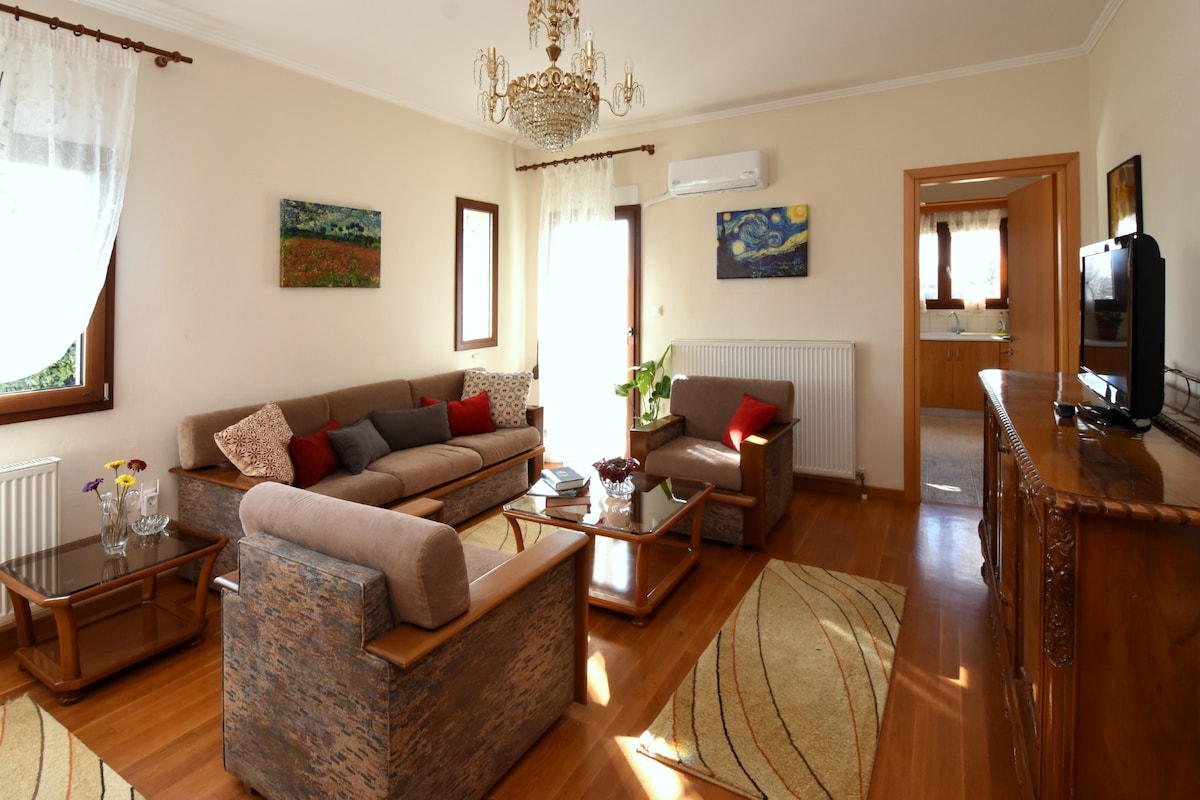 Apartment sa isang magandang lokasyon kung saan matatanaw ang dagat at Thessaloniki. Nilagyan ang lahat ng amenidad ng mga muwebles at de - kuryenteng kasangkapan. Pag - init ng air conditioning at fireplace Layo mula sa beach tatlong minuto . Mula sa Thessaloniki Airport 9.6 km At 23 km mula sa Historic Center ng Thessaloniki Madaling mapupuntahan ang prefecture ng Halkidiki 50 km lang papunta sa mahuhusay na beach nito na may walang katapusang asul at maliwanag na araw . Mataas na antas ng hospitalidad para sa kaaya - aya at di - malilimutang pamamalagi .