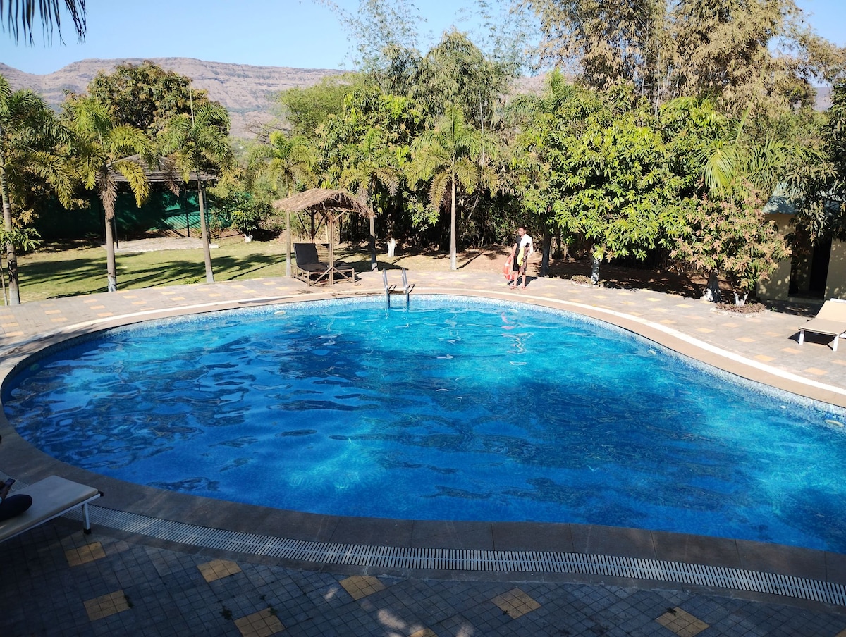 Ang aming Stand - alone 3Acre Villa ay 1 at kalahating oras lang mula sa Mumbai sa Karjat sa kanang oppposite sa sikat na Saltt restaurant. Mula sa property, makakakuha ka ng mga tanawin ng bundok na may magagandang tanawin. Ang Villa USP na ito ay isa sa Pinakamalaking swimming pool ng Karjat at napakalaking 3 Acre Lawn. Ang property ay 7 minuto o 3 KM ang layo mula sa istasyon ng tren ng Karjat at 4.7 KM mula sa sentro ng lungsod ng Karjat.