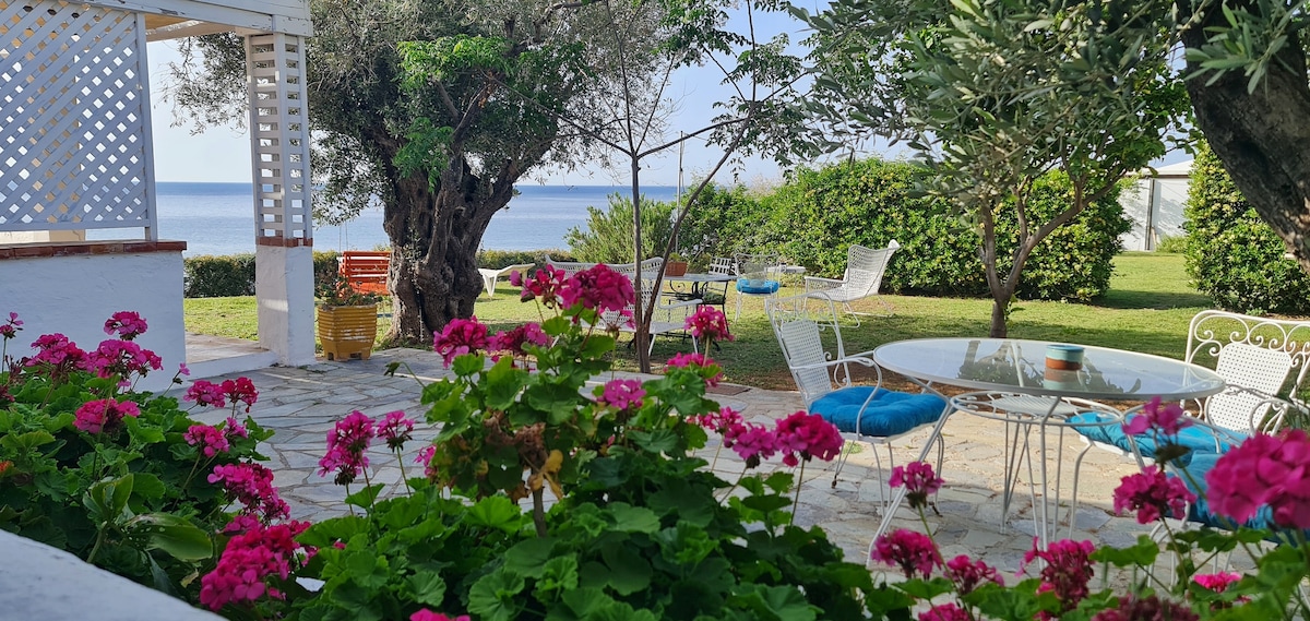 Ang turquoise na tubig ng dagat na sinamahan ng halaman ang mga puno ng olibo at puno ng pino ay lumilikha ng hindi malilimutang background para sa pagpapahinga at katahimikan. Ang cypress terrace ang reference point ng tuluyan. Ang terrace na ito ay nag - aalok nang walang reserbasyon ng natatanging tanawin. Pero ang talagang hindi malilimutan ay ang pagsikat ng araw. Nag - aalok ang tuluyan sa bisita ng natatanging karanasan para masiyahan sa kanilang bakasyon.